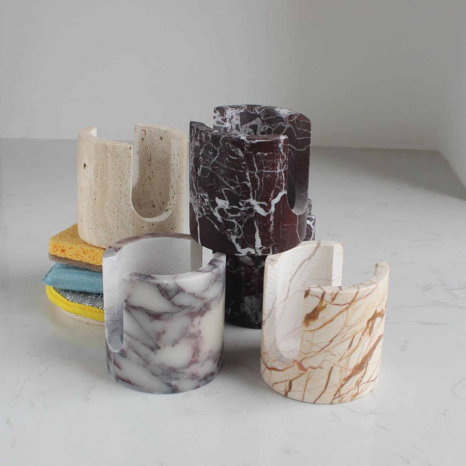 • Super Absorbent & Fast-Drying: The smooth yet functional surface of natural marble effectively manages moisture and promotes quick drying, helping to keep your kitchen counter tidy, dry, and free from soggy sponge clutter