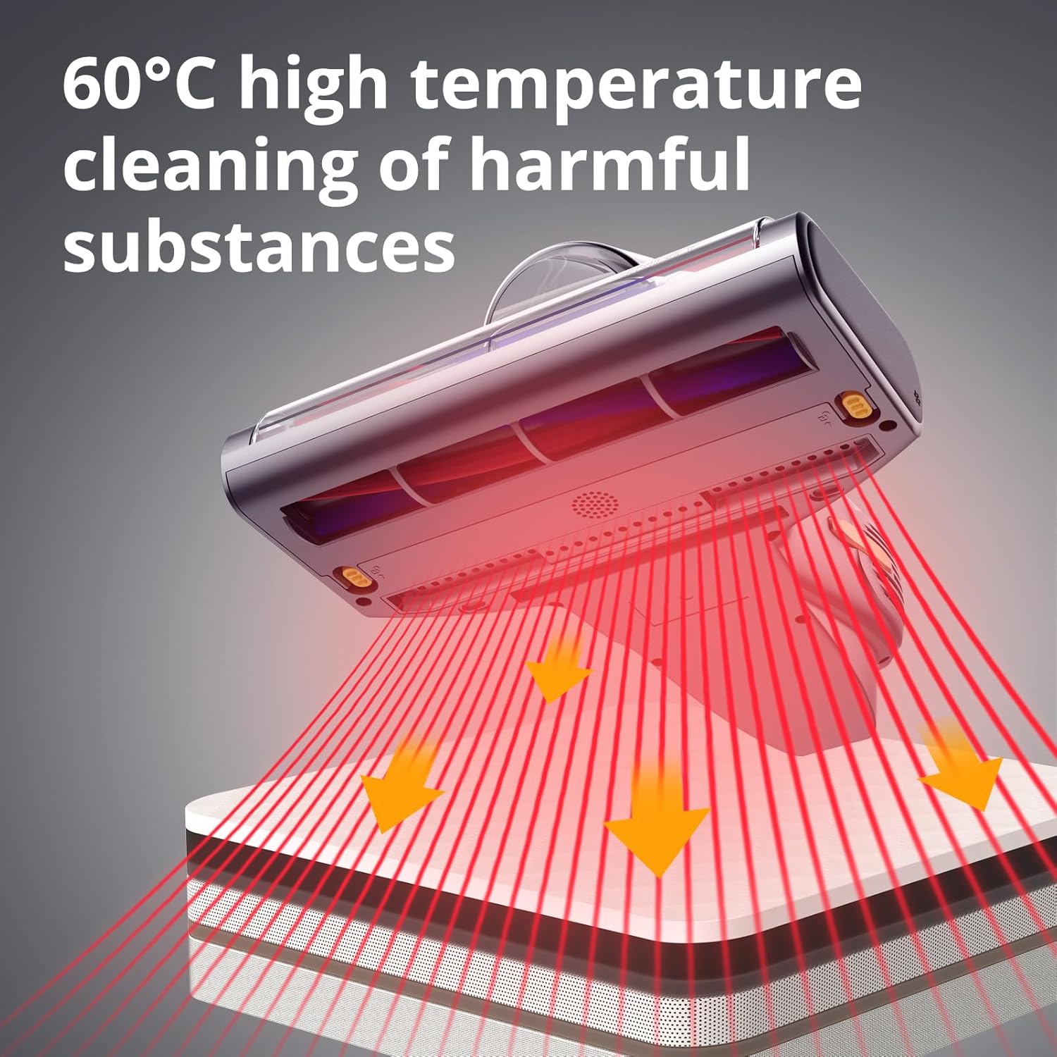 • High temperature: 5s heating to 140℉ (60℃), this vacuum cleaner can quickly removal dust, making it perfect for households with pets and babies. Note: The heating function only works when the machine is in contact with the mattress. If you lift the machine, it will automatically stop heating.