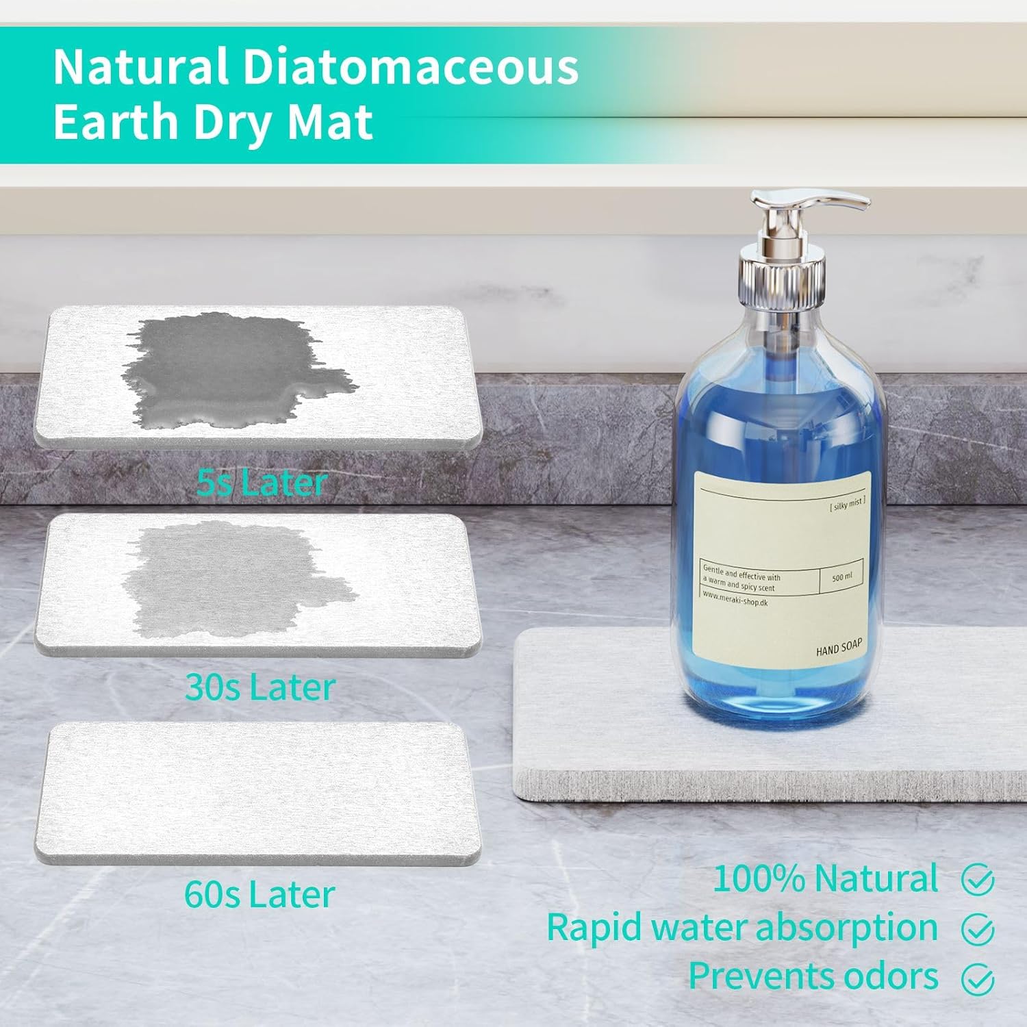 • [Instant Dry Sink Caddy]: The bottom of our sponge holder is made of diatomaceous earth absorbent mat, which automatically absorbs water and dries in 60 seconds, no longer need to manually pour water.The mat is removable, so you can remove it for cleaning