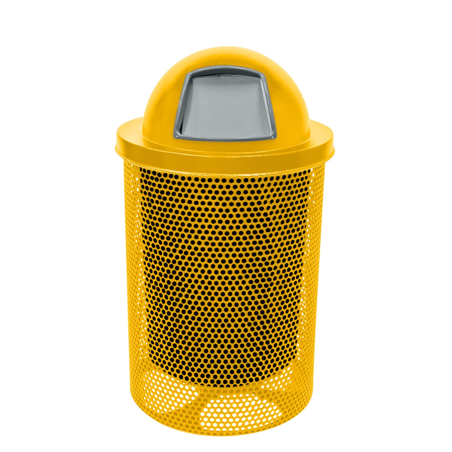 COATEDOUTDOORFURNITURE Coated Outdoor Furniture 32-Gallon Heavy-Duty Punched Steel Round Trash Receptacle, Commercial Outdoor Waste Bin with Liner & Dome Lid – Made in America (Textured Yellow)