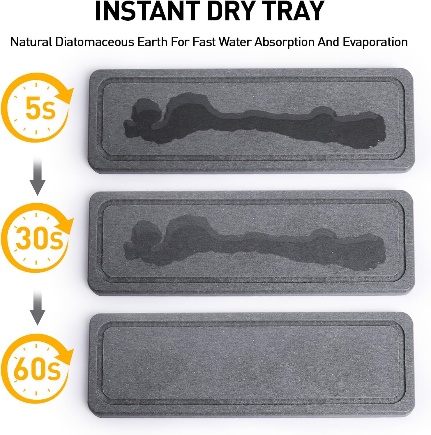 • 【QUICK DRY TRAY】Moforoco's soap dispenser set uses a new material, diatomaceous earth. Experiments have shown that diatomaceous earth has stronger water absorption, is environmentally friendly and safe, and has the characteristics of quick drying. It is very suitable for use around the sink and sink, so that the kitchen sink is always dry.
