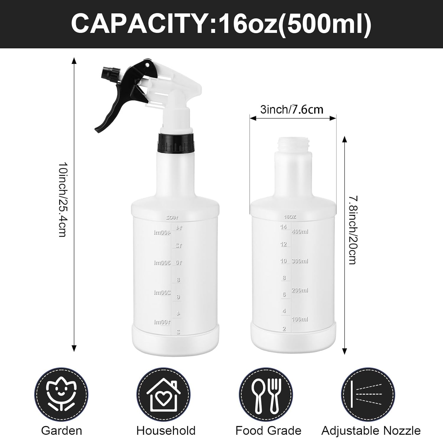 • Size and Capacity: the diameter of the empty spray bottles is approx. 6.7 cm/ 2.64 inches, the length is approx. 26 cm/ 10.24 inches, and the capacity is 500 ml/ 16 oz, suitable size to meet your various needs