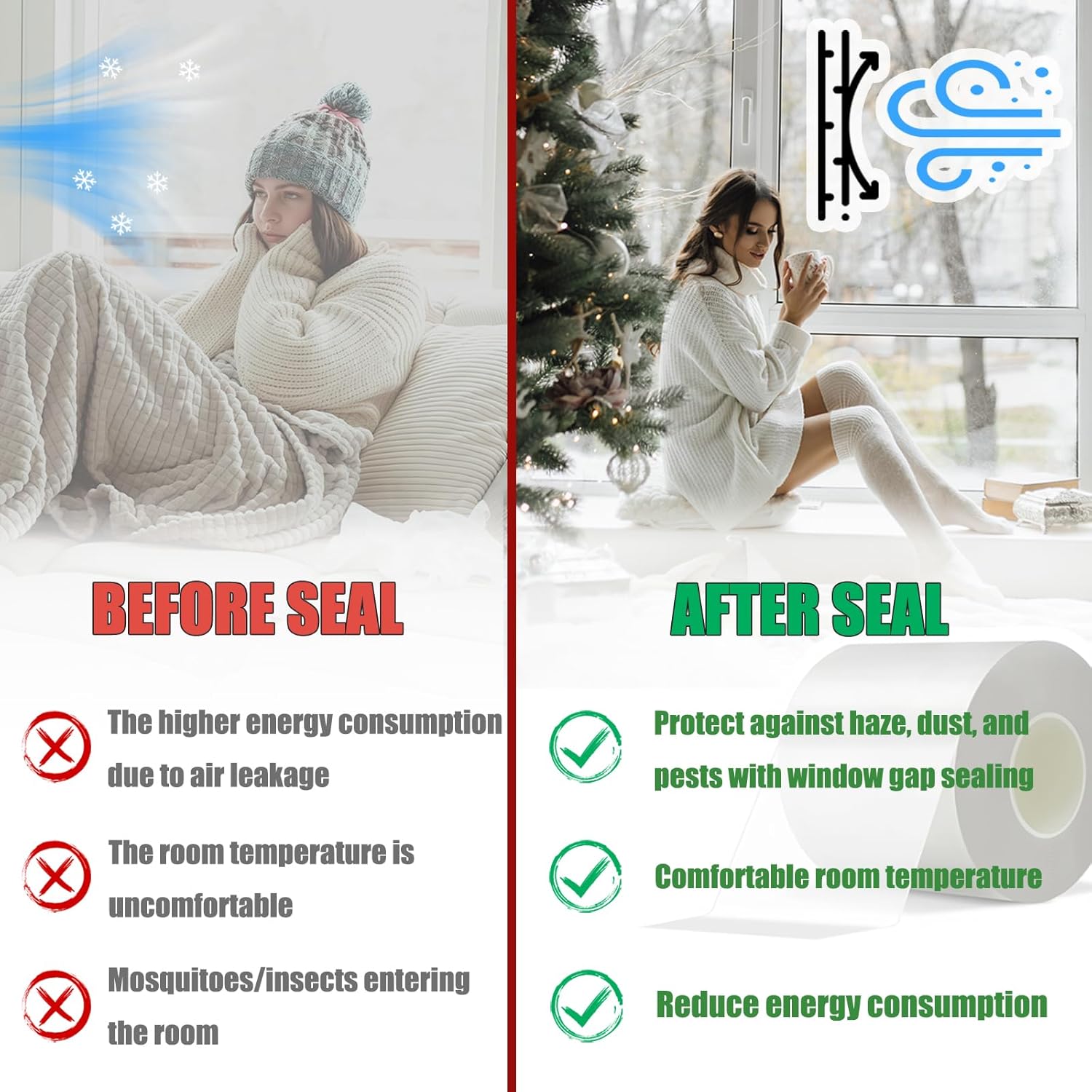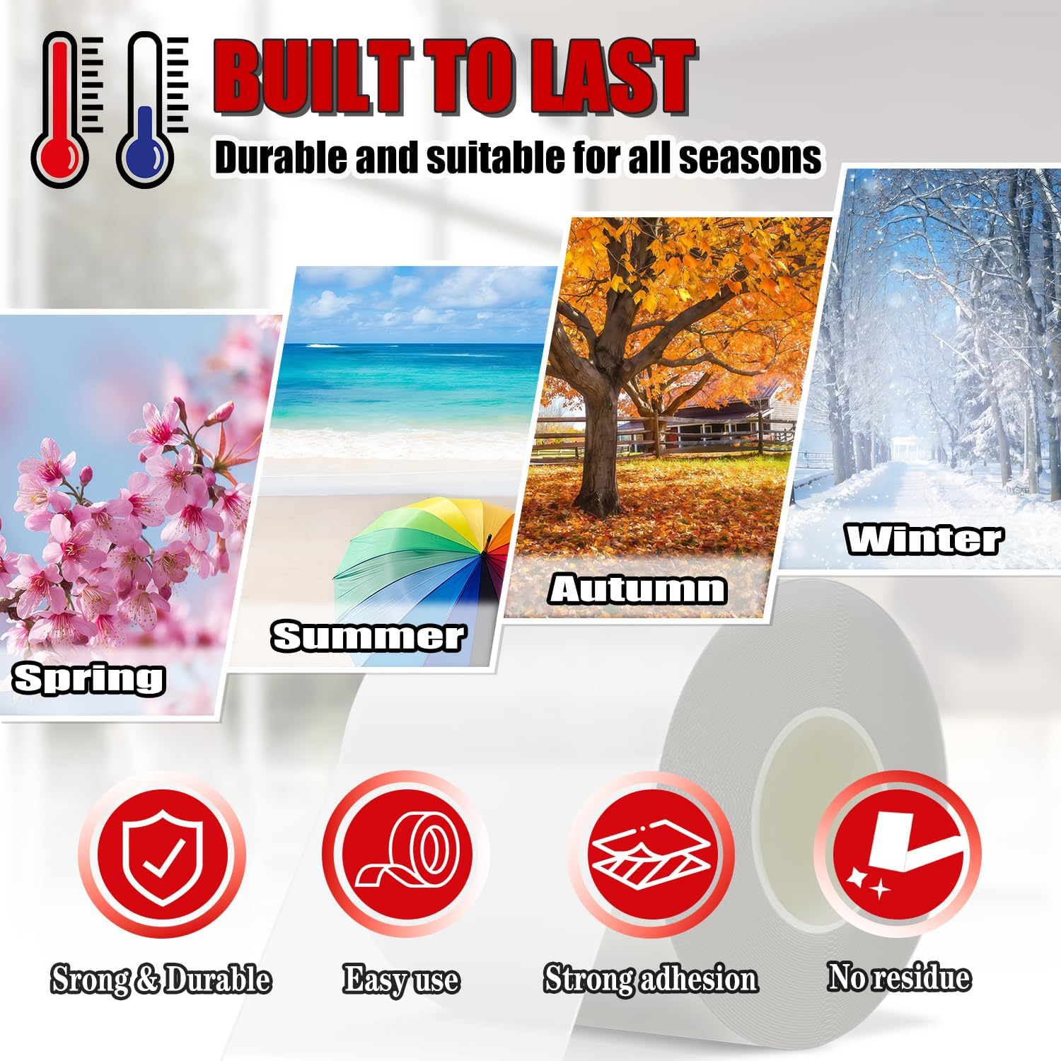 • High Quality Material:Made of durable, weather-resistant Nano tape, this tape creates an airtight seal to block drafts, dust, and moisture while remaining flexible in cold temperatures.keeps your home warm/cool and quiet in winter/summer.