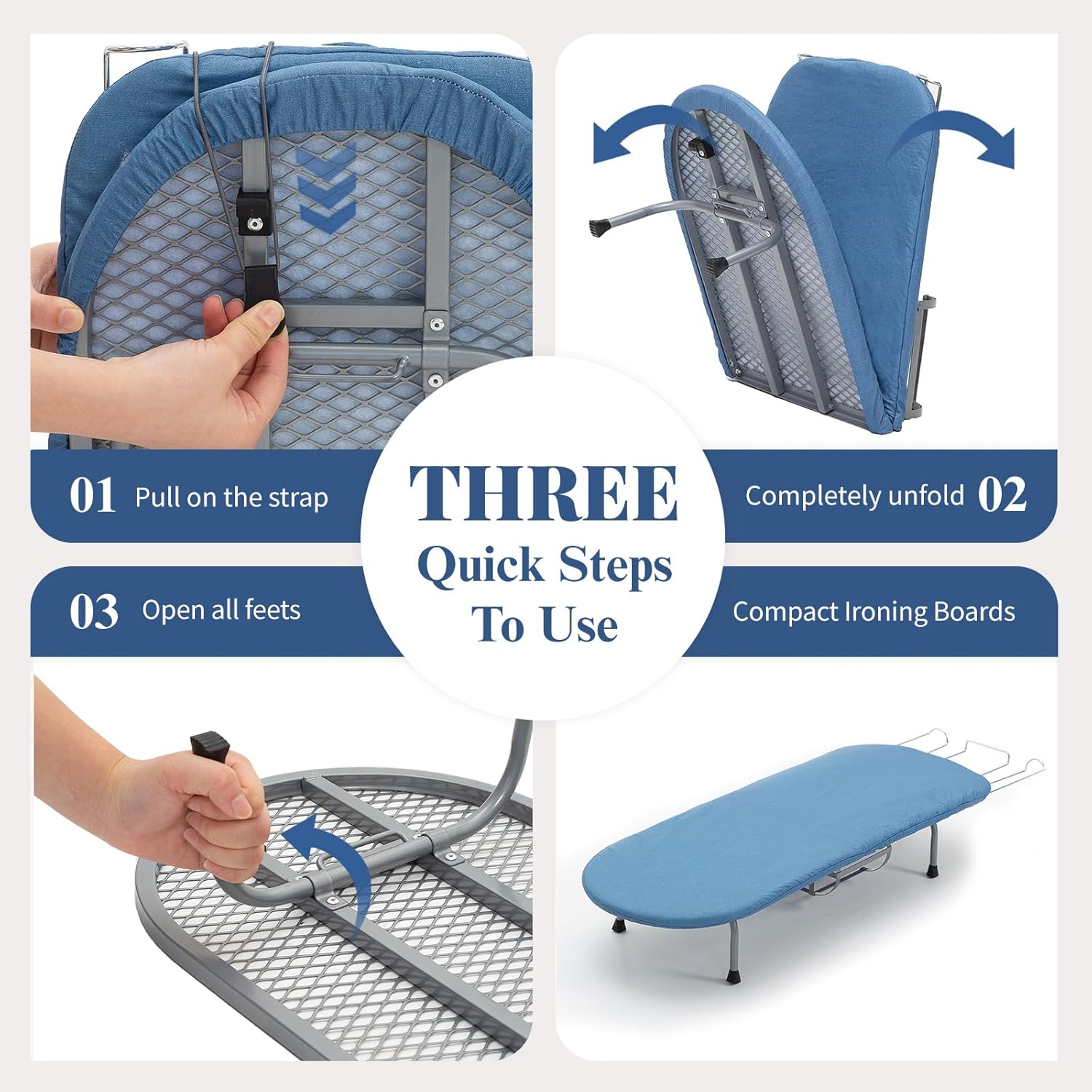 Metal Foldable Iron Board with Iron Holder, RAINHOL Small Ironing Board Tabletop with Heat Resistant Cover, 31x12 Mini Compact Ironing Table for Dorms, Aprtment, Blue