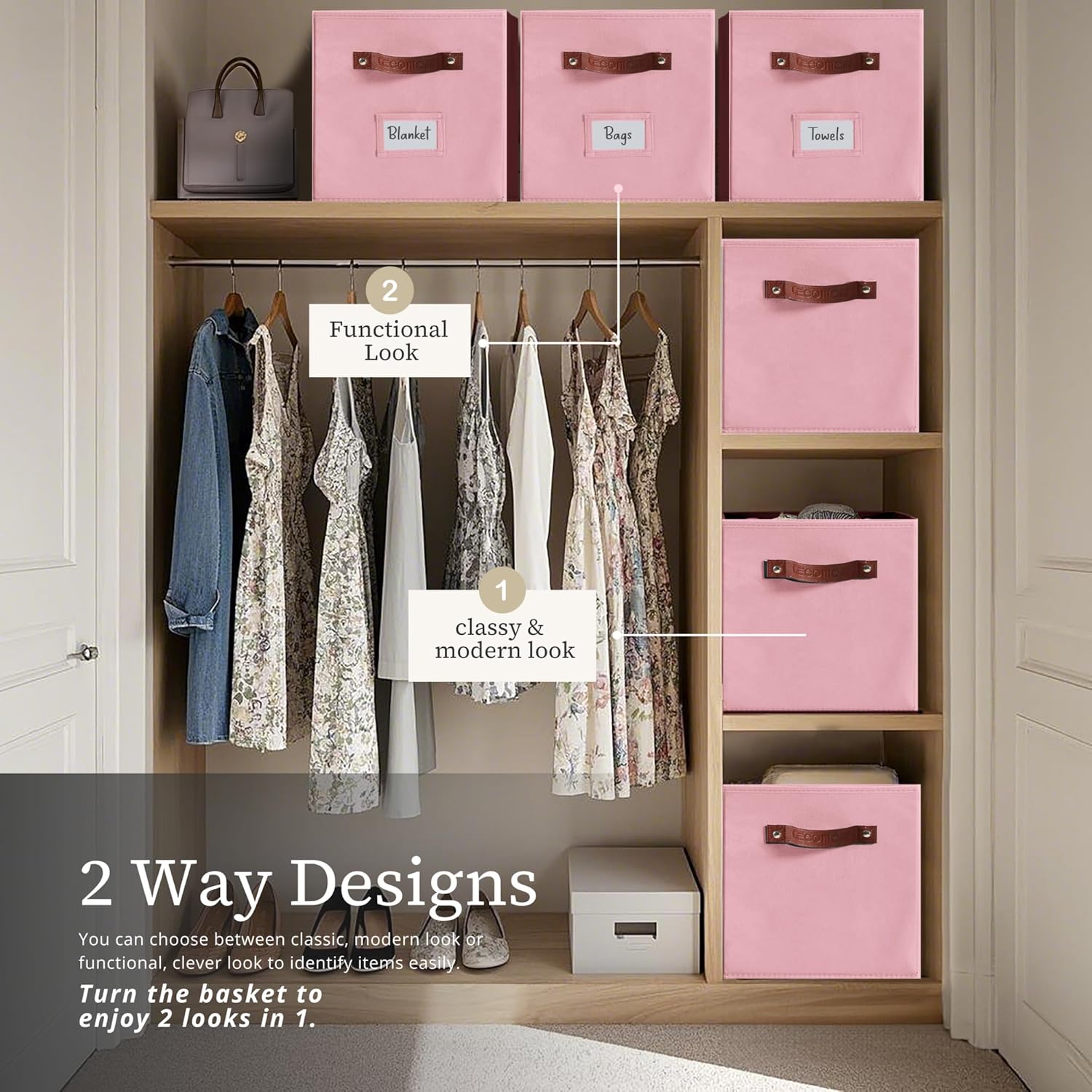 • 2-Sided Designs: With its dual handle features, our 13x15x13 storage cube bins can be used in both sides with a label holder on the front, or at the back.