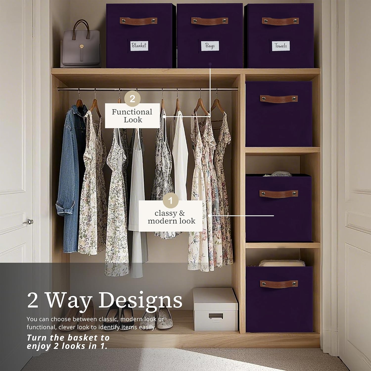 DECOMOMO Storage Baskets, 13x15x13 Storage Cube Bins with Labels for Organizing Shelves Kallax (Kallax / 4pcs, Deep Purple)
