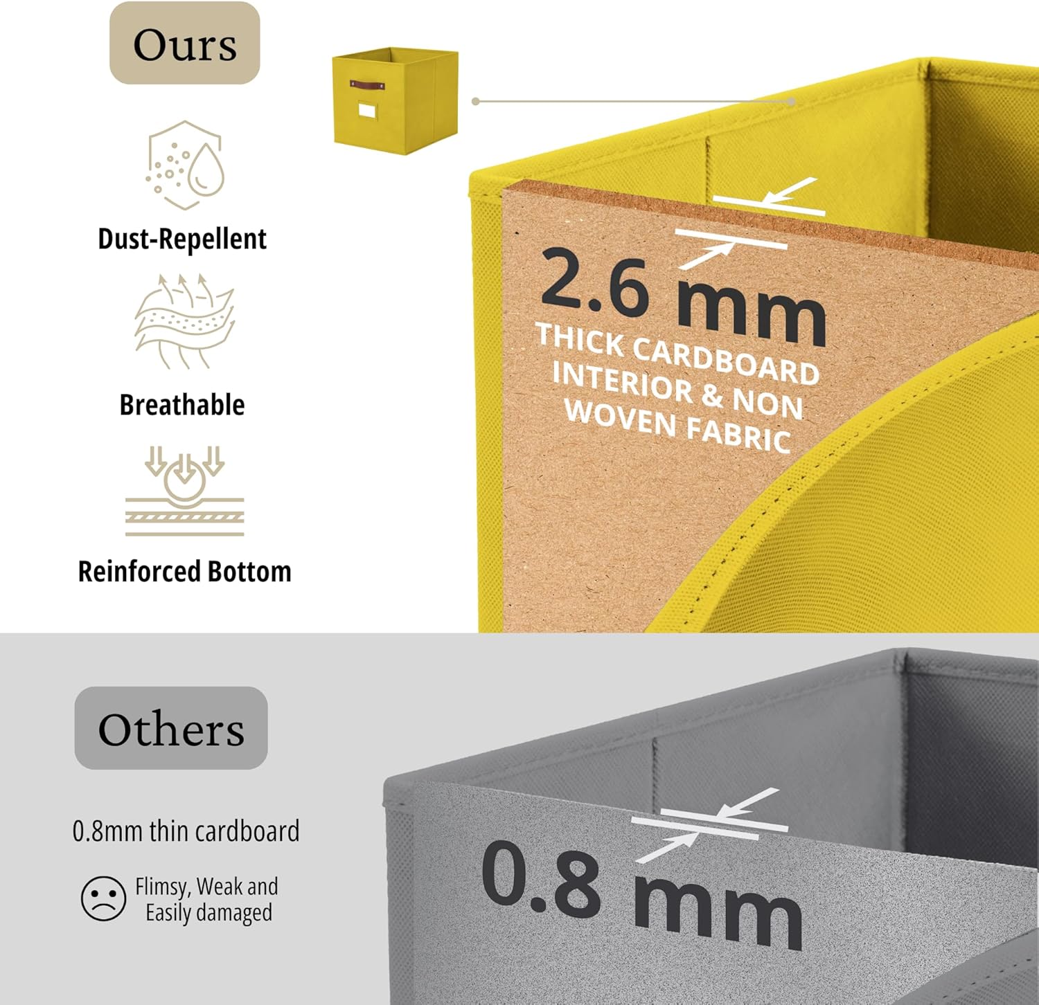 • Functional Material: Upgraded rainbow bins design with two handles can hold up to 11 lbs with a firm structure that’s made with 2.6MM thick cardboard throughout the cubes. Made with durable dust and tear-resistant non-woven fabric.