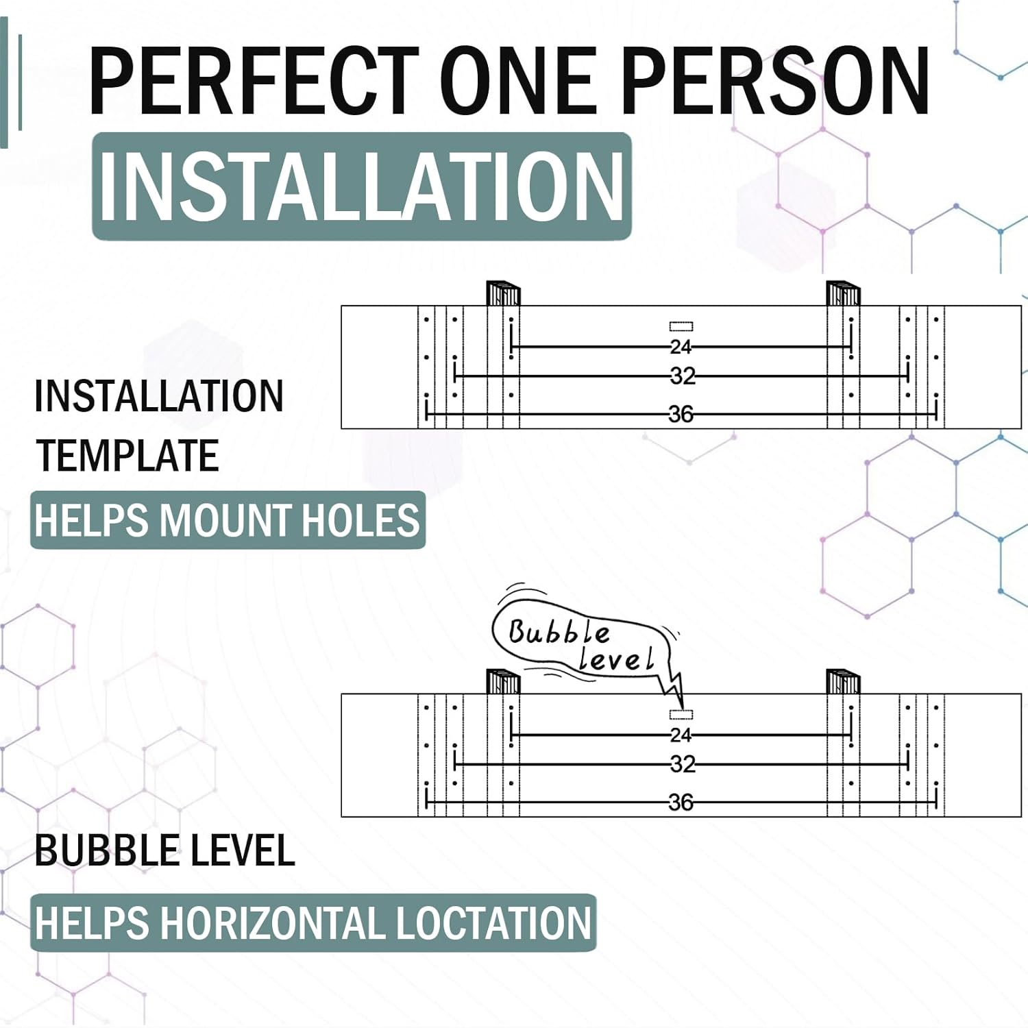 • 【Quick – Secure Setup】: Easy one-person installation with all hardware included: Installation Template helps mount holes; Bubble Level helps get perfect horizontal location.
