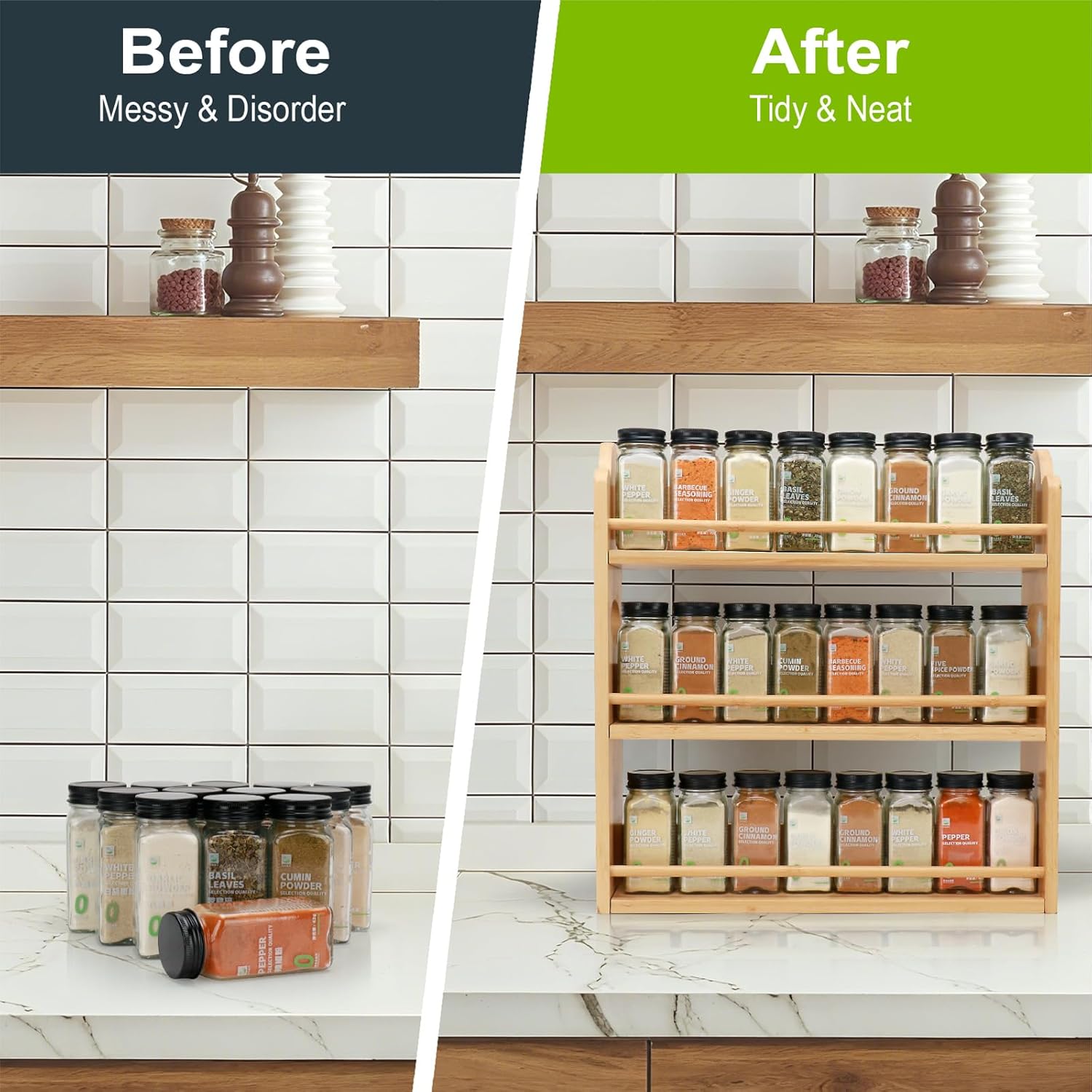 • Durable and Sturdy: The spice rack is made of naturally solid bamboo. This rack features a smooth, moisture - resistant surface. Durable and sturdy, it ensures lasting stability for reliable daily use and helps prevent scratches during assembly. Easy to maintain, simply wipe it clean with a towel. (Spice Jars Not Included)