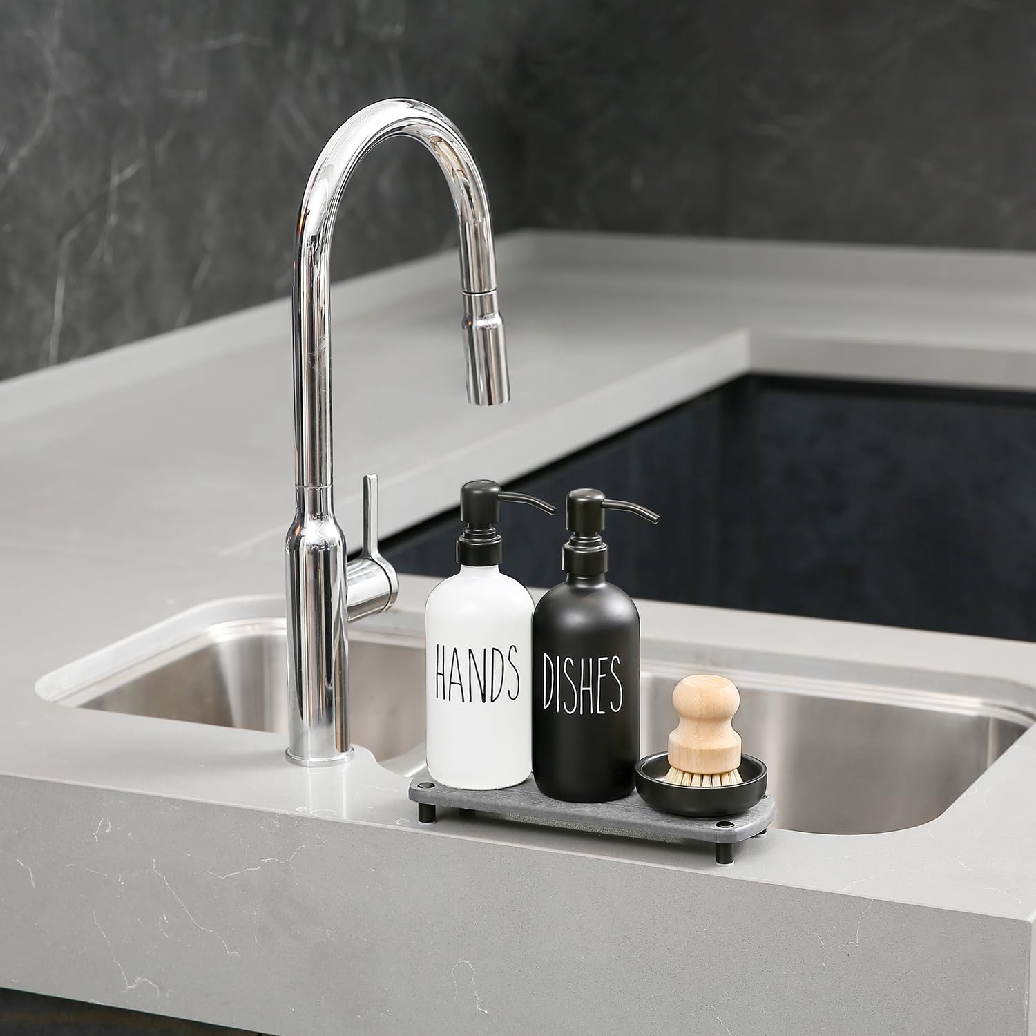 MOMEEMO Soap Dispenser for Kitchen Sink Comes with Stainless Pumps, Instant Dry Tray, and Dish Scrub Brush, Suitable for Black and White Kitchen Decor. (Black & White)