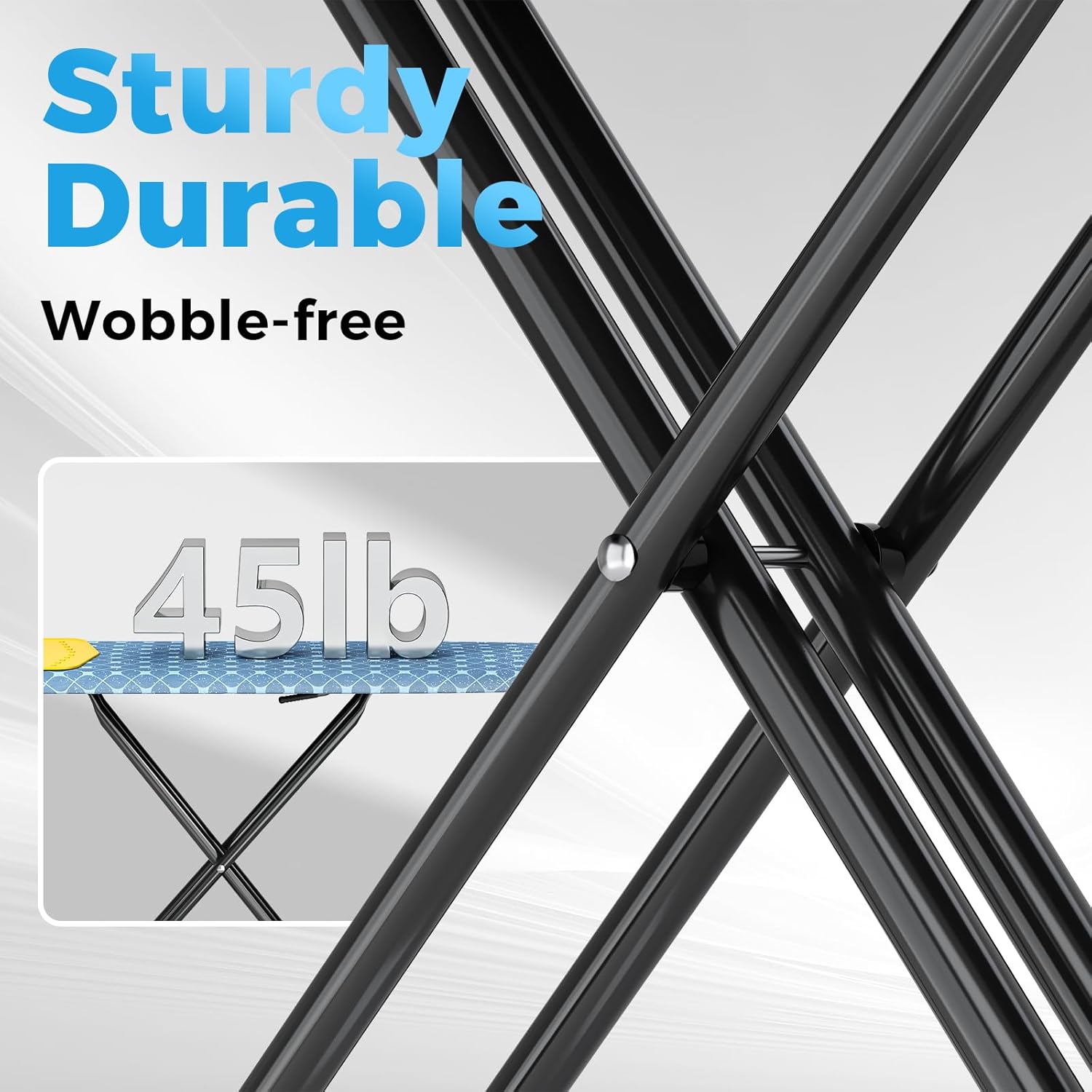 • Breathable Extra-Wide Panel: This ironing board features a spacious surface with dimensions of 13x43 inch, large enough to lay out various types of clothing, generously sized top allows for efficient and effective ironing, saving you time and effort. Mesh design make ironing stand dissipates heat quickly, allowing you to easily achieve a smooth and flat ironing effect