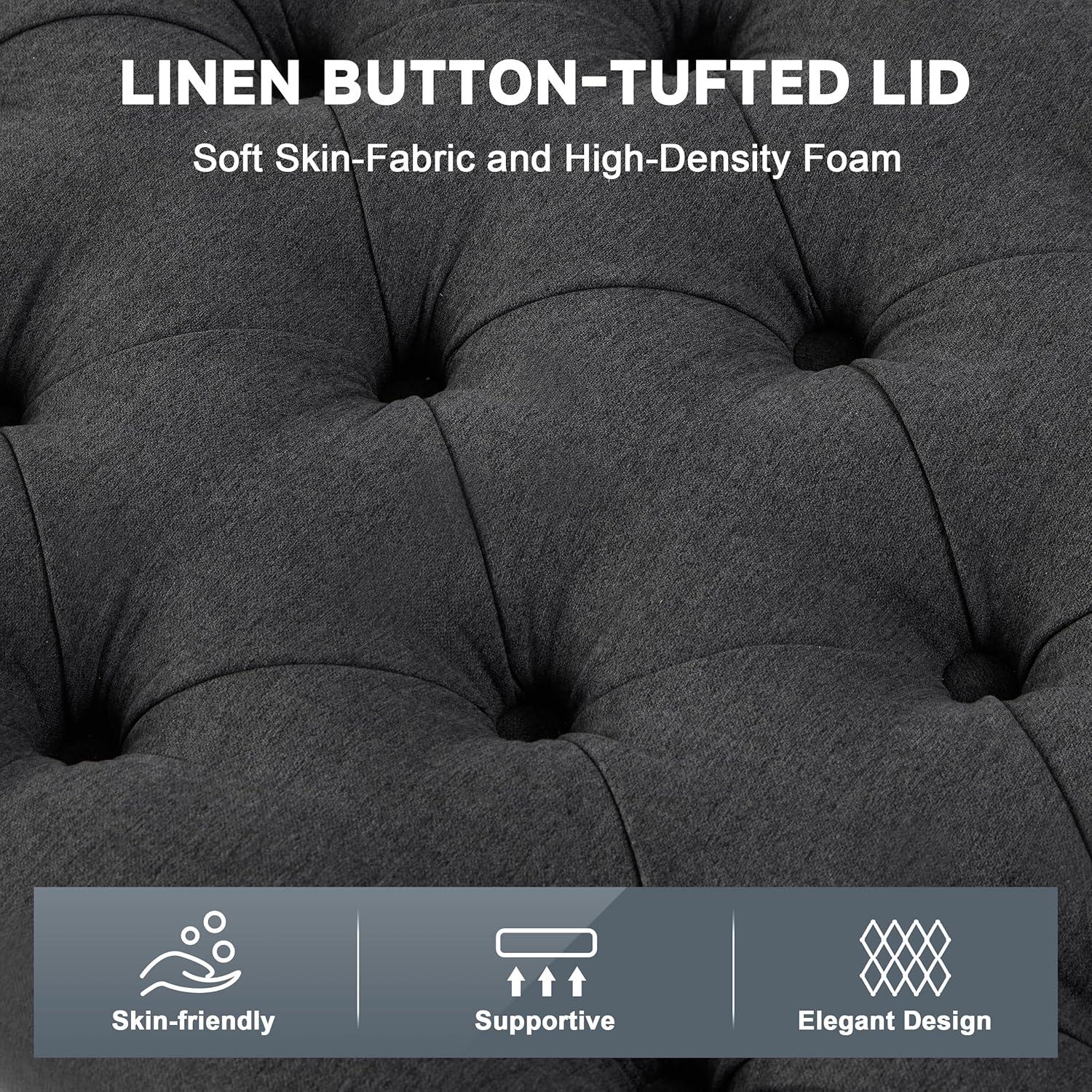 • Modern Minimalist Design: The tufted cushion design combines with a rectangular shape, while the neutral linen fabric of the ottoman storage bench effortlessly blends with both modern and classic styles, making it a versatile addition to any home decor