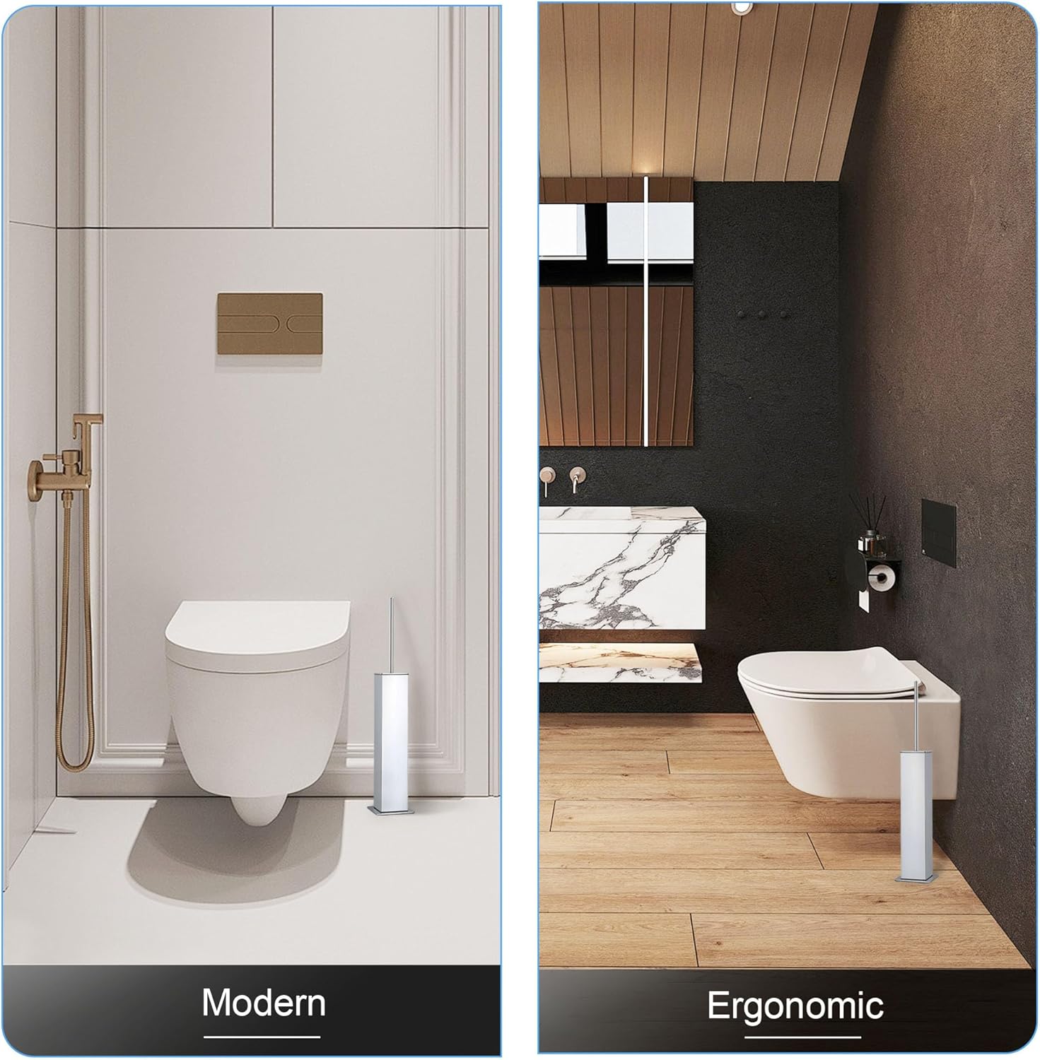 BVL Toilet Brush and Holder Set Chrome Stainless Steel 304 Square Freestanding Toilet Brush for Bathroom