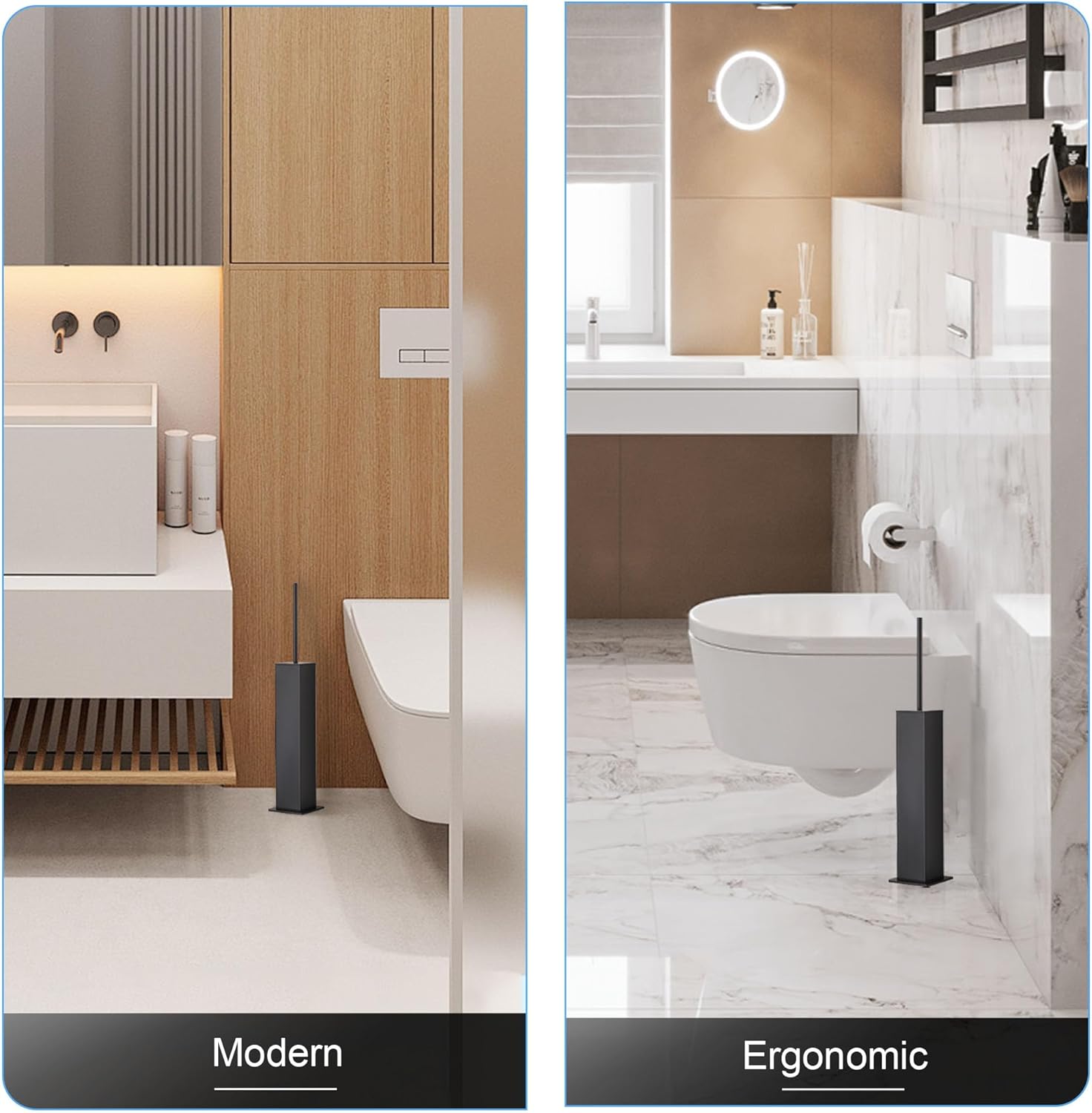 • Heavy-Duty 1 mm-Thick 304 Stainless Steel & Matte Black Finish – Our 304 stainless steel toilet brush uses industrial-grade 1 mm gauge steel with a durable matte black toilet brush powder coat that resists rust, corrosion, and chipping—even in the steamiest bathrooms.