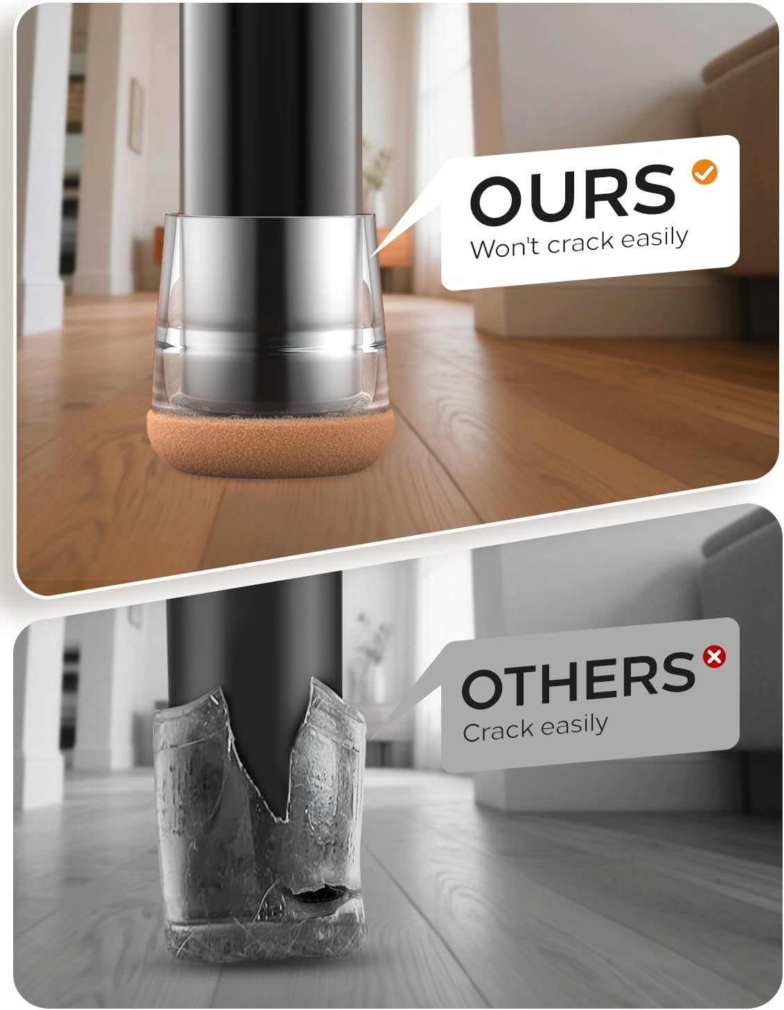 • 360° Felt-Bottom floor protectors- 360 ° fully wrapped felt design. Made from high-density industrial felt and flexible silicone to withstand daily wear, heavy chairs, and frequent movement without tearing or flattening, ensuring long-lasting floor protection.