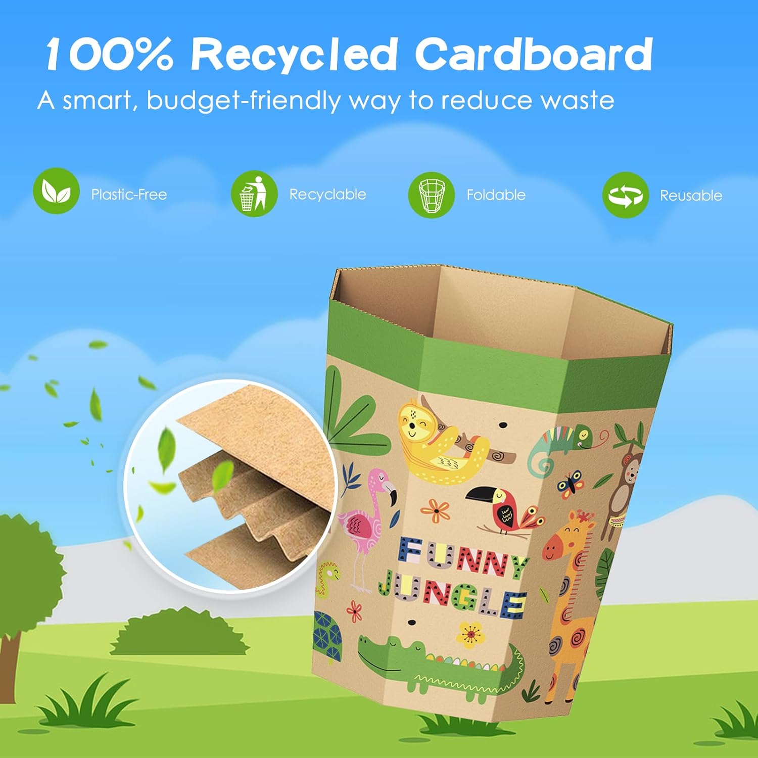 6-Pack Cardboard Trash Can – Foldable, Recyclable, Plastic-Free & Reusable Small Waste Paper Basket for Kids - Garbage Bin Perfect for Bedrooms, Playrooms, Children's Room & Outdoor (3.2 Gallon)