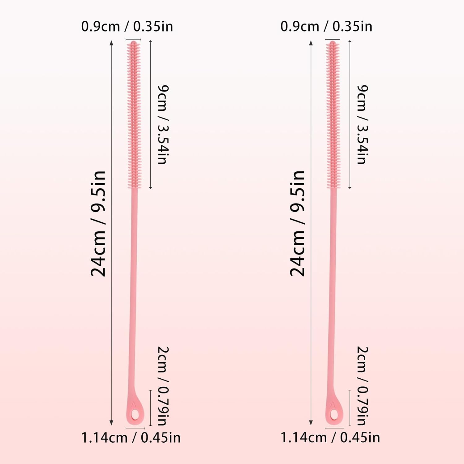 • Package Includes: You will receive 2 pieces of silicone straw cleaner brushes, each measuring about 24cm/9.5in long with a 9mm/0.35in width silicone brush head, perfect for reaching deep into straight, angled, or curved straws, tubes, or bottles for a thorough clean.