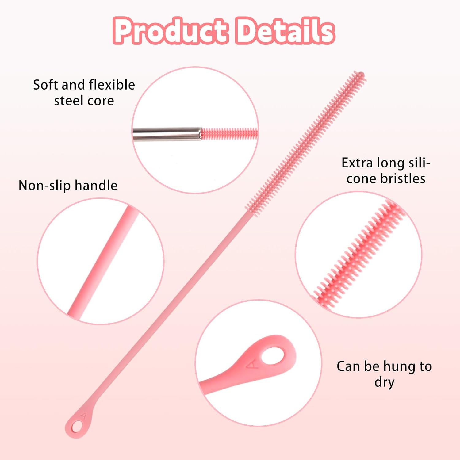 • Convenient & Easy to Use: The silicone straw cleaner brush is designed with a soft and flexible steel core, easily bending to follow the curves of straws or bottle parts. It is dishwasher-safe for easy cleaning and maintenance.