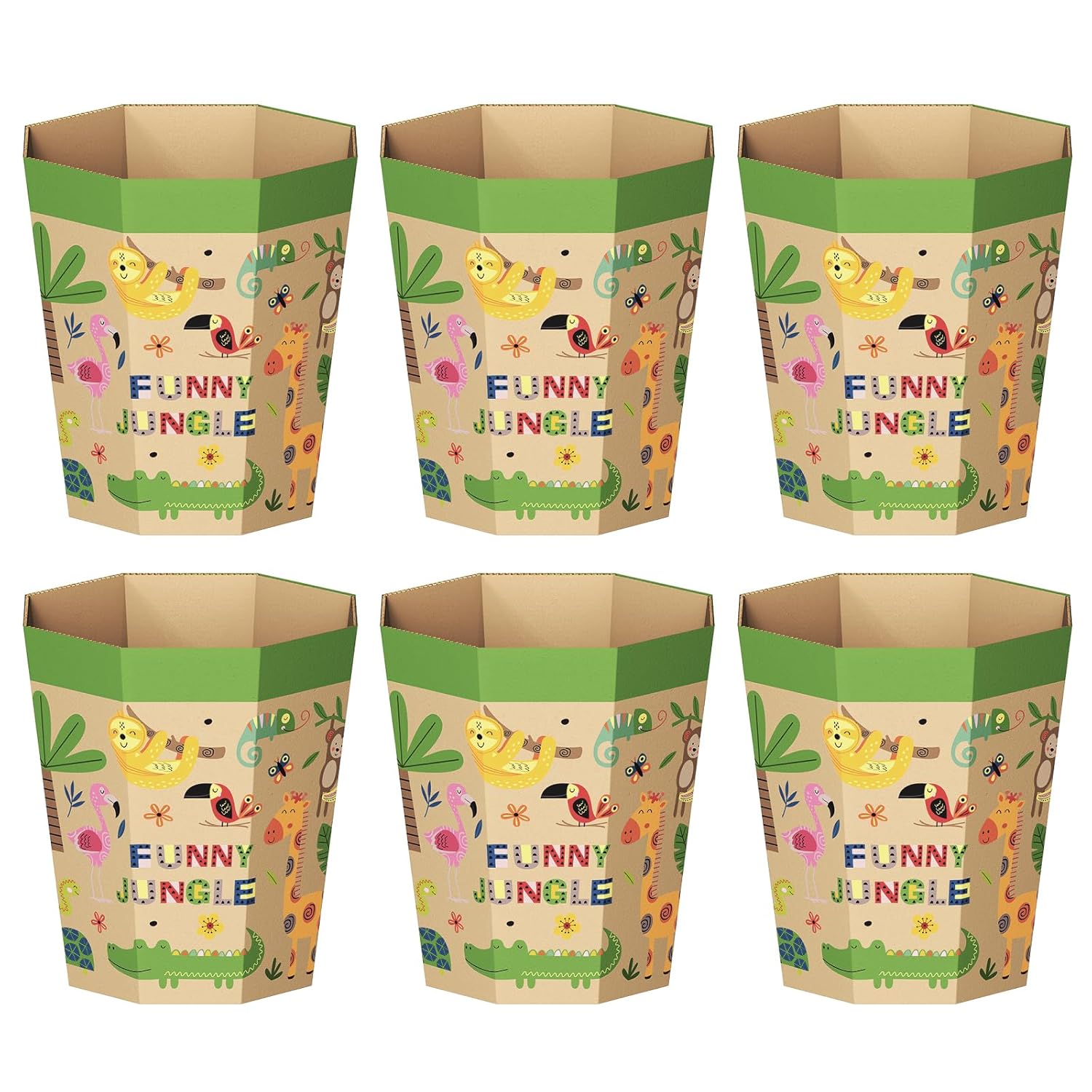 6-Pack Cardboard Trash Can – Foldable, Recyclable, Plastic-Free & Reusable Small Waste Paper Basket for Kids - Garbage Bin Perfect for Bedrooms, Playrooms, Children's Room & Outdoor (1.6 Gallon)