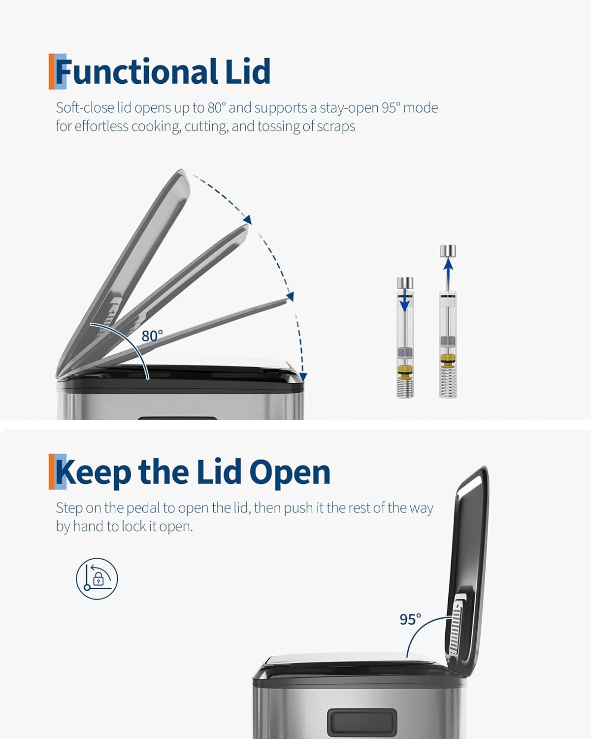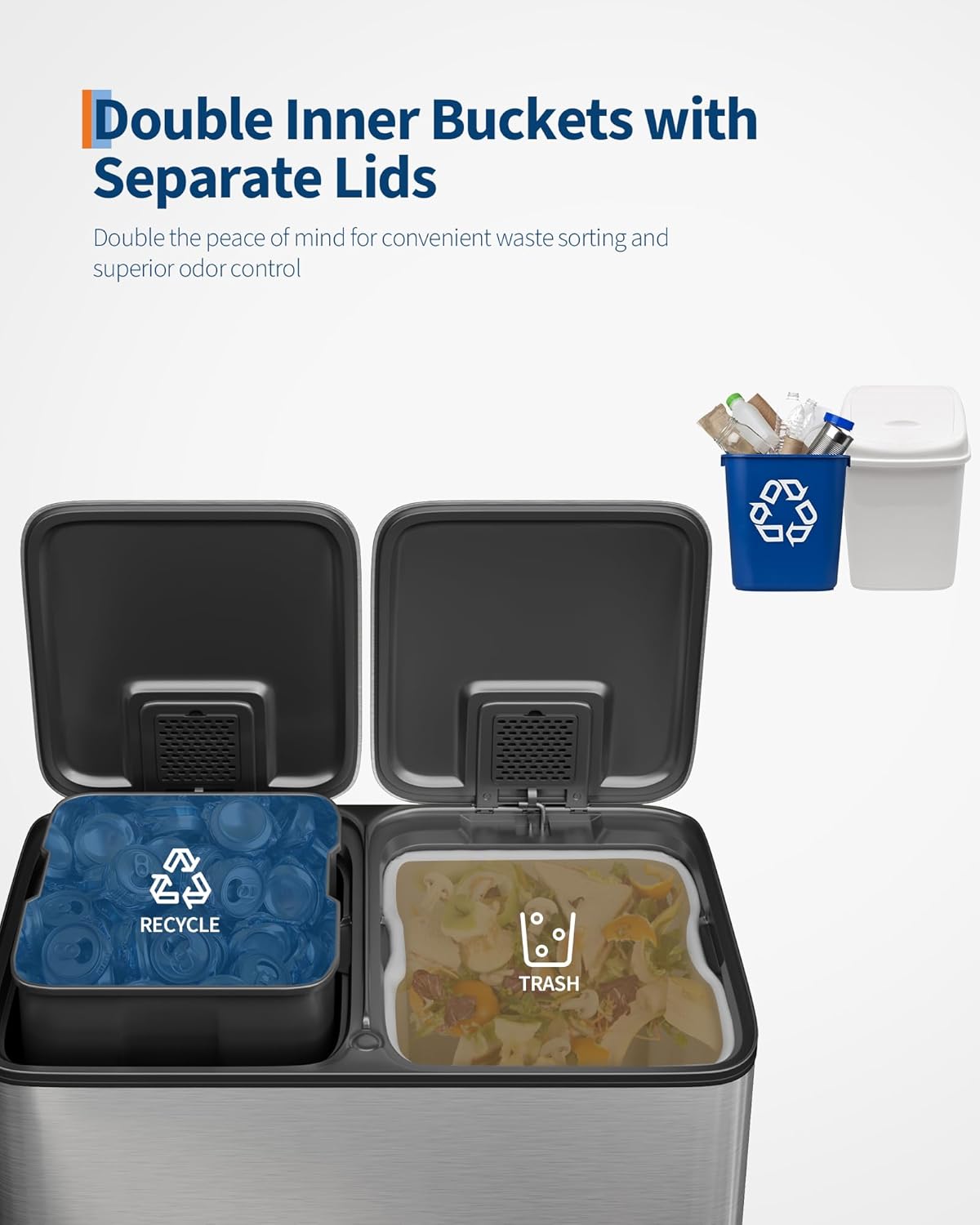 • Special Feature : Durable, Dual Compartment, Rustproof, Odor Seal, Quiet Close, Easy to Clean, Anti-slip, Removable Inner Buckets, Liner Rim, Fingerprint-resistant, Side Handles, Liner Ring Durable, Dual Compartment, Rustproof, Odor Seal, Quiet Close, Easy to Clean, Anti-slip, Removable Inner Buckets, Liner Rim, Fingerprint-resistant, Side Handles, Liner Ring