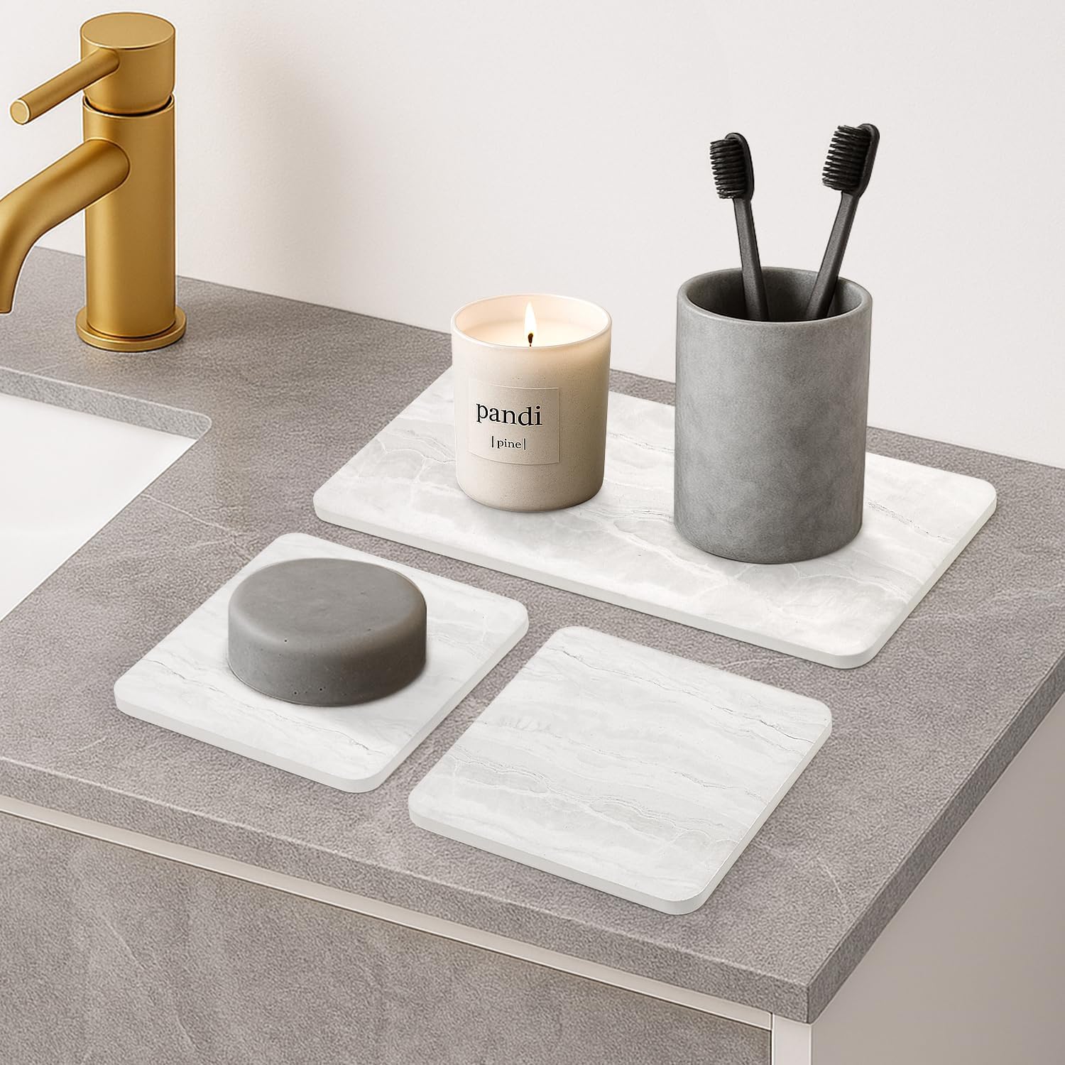 4 Pack Water Absorbing Stone Drying Tray for Bathroom Sink Trays Kitchen Counter Diatomite Stone Quick Dry Diatomaceous Earth Mat for Sink Kitchen Soap Trays Ceramic Marble Bathroom Vanity Tray