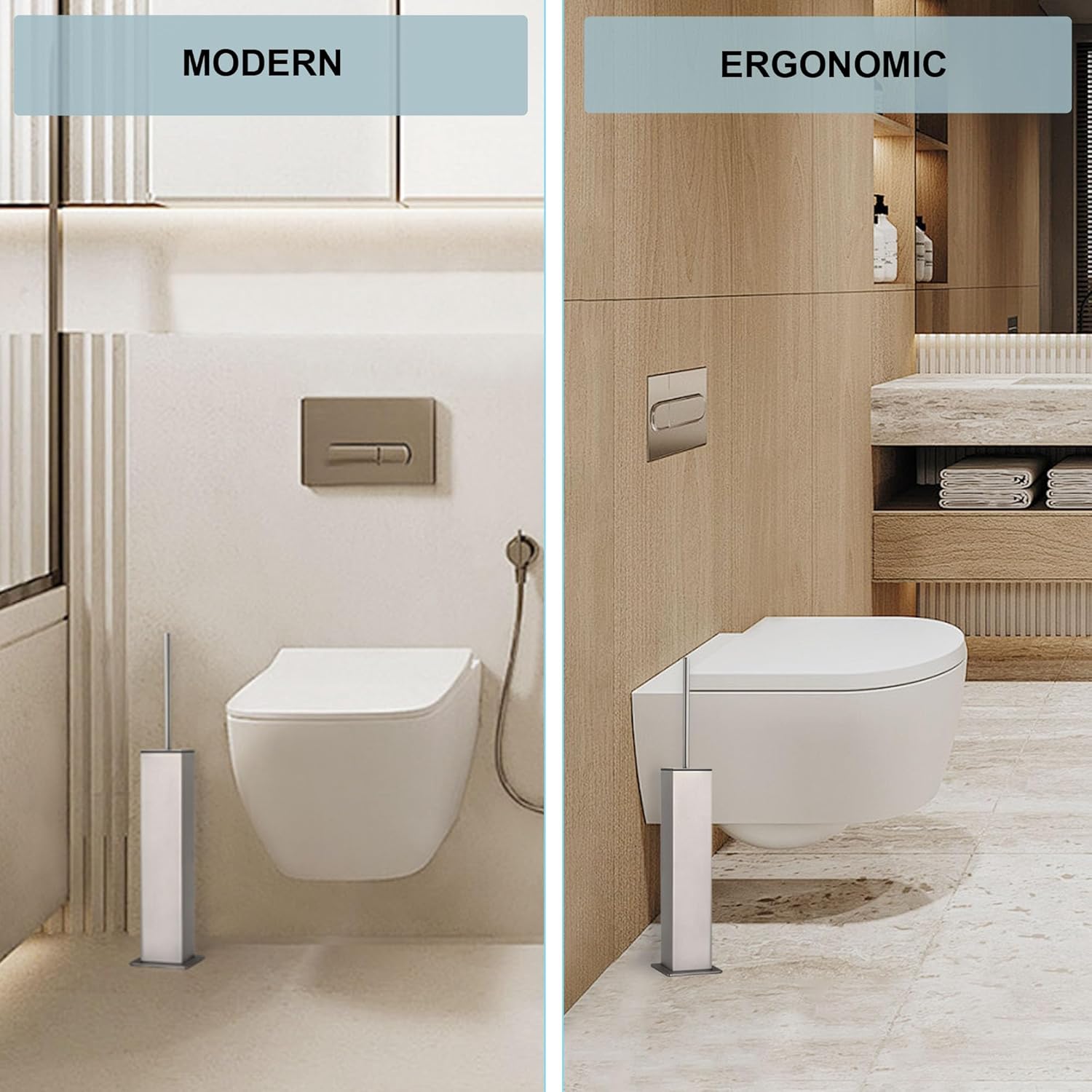 • Premium 304 Stainless Steel Toilet Brush Set:Crafted from 1mm-thick 304 stainless steel, this toilet brush and holder set delivers exceptional corrosion resistance. The durable combination of toilet bowl brush and holder ensures long-lasting performance.