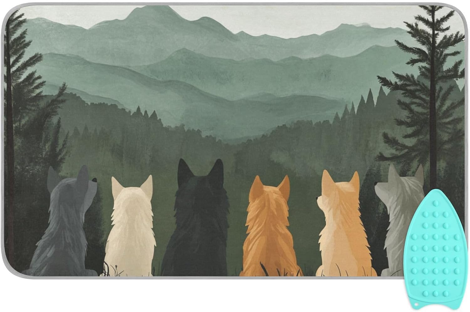 Ironing Mat Portable Ironing Pad Ironing Blanket for Table Top Heat Resistance Double-Side Using Travel Large 47.2 x 27.6 Inch Foldable Lightweight Cute Wolves Back and Green Mountain
