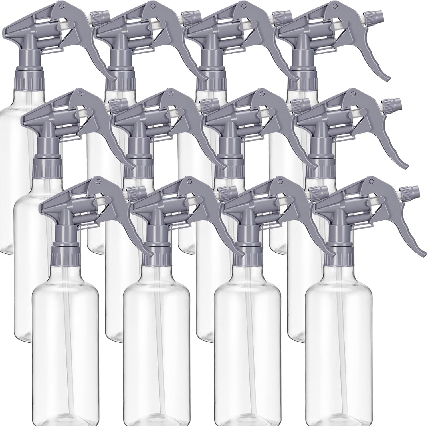 Eccliy 12 Pcs 16 Oz Plastic Spray Bottle, Adjustable Empty Reusable Sprayer for Cleaning, Planting, Water, Bathroom and Kitchen, BBQ, Commercial and Residential(Pure Grey,Clear)