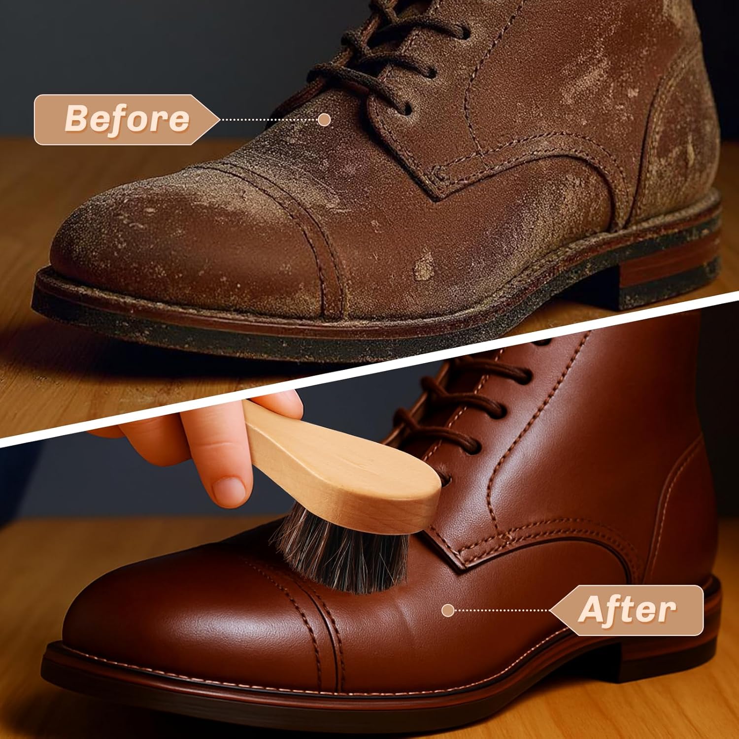 • Material - The brush is made of horsehair and wood, cleaning and shining your shoes the cloth is made of microfiber, this set could meet your daily needs of different footwear for an amazing performance