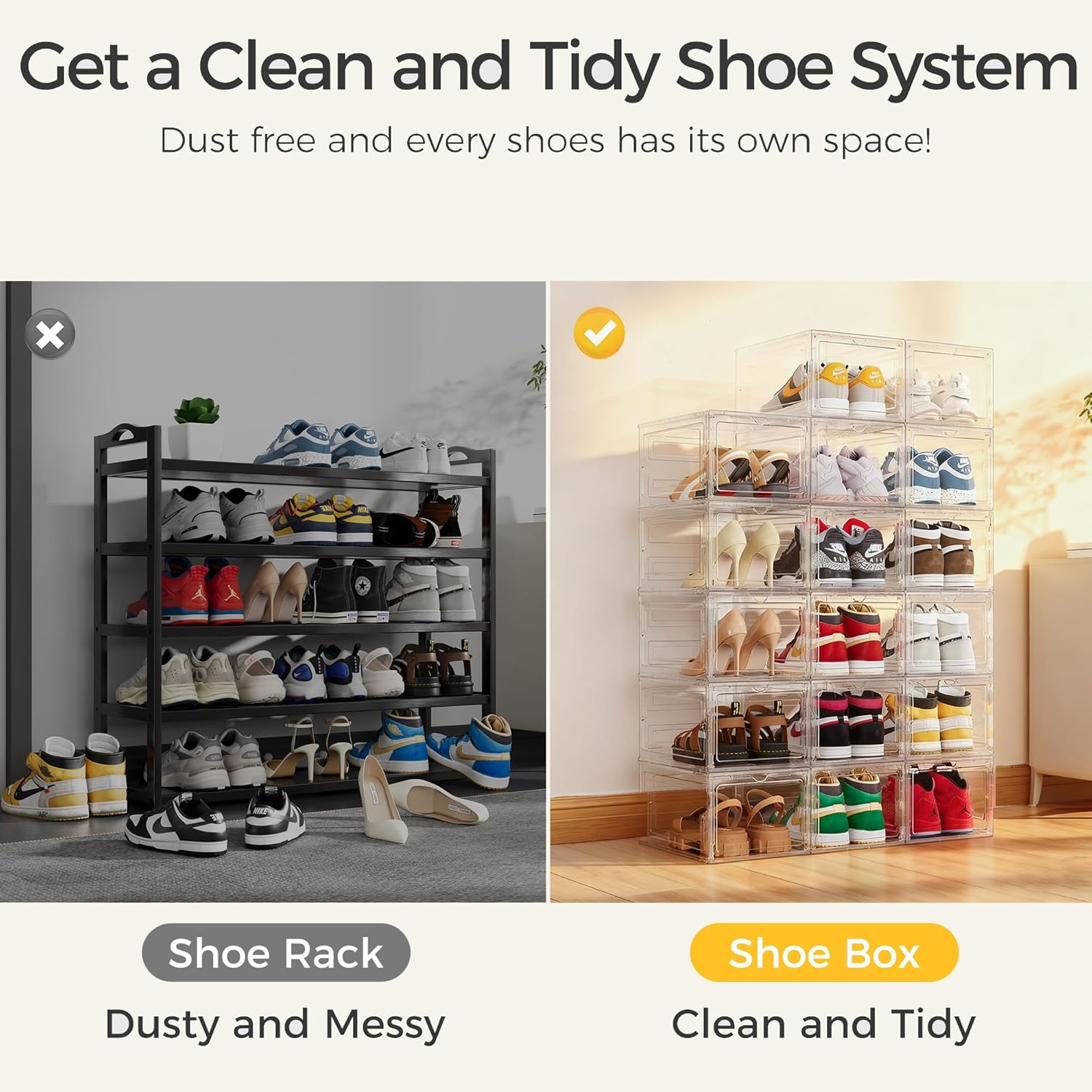 • Ultra Clear for Display: Standout display-ready design with 360° clear panels. Unlike standard half clear shoe boxs, our hignly clearly magnetic doors let you instantly locate and showcase your sneaker collection like retail displays.