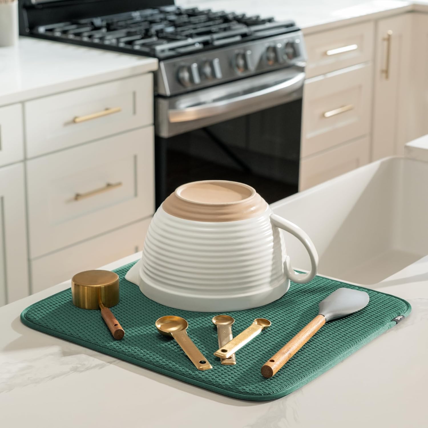 • Dish drying mats for kitchen counter are reusable, machine washable, and easy to store for kitchen organization; durable construction will not chip or break like a stone dish drying mat for kitchen
