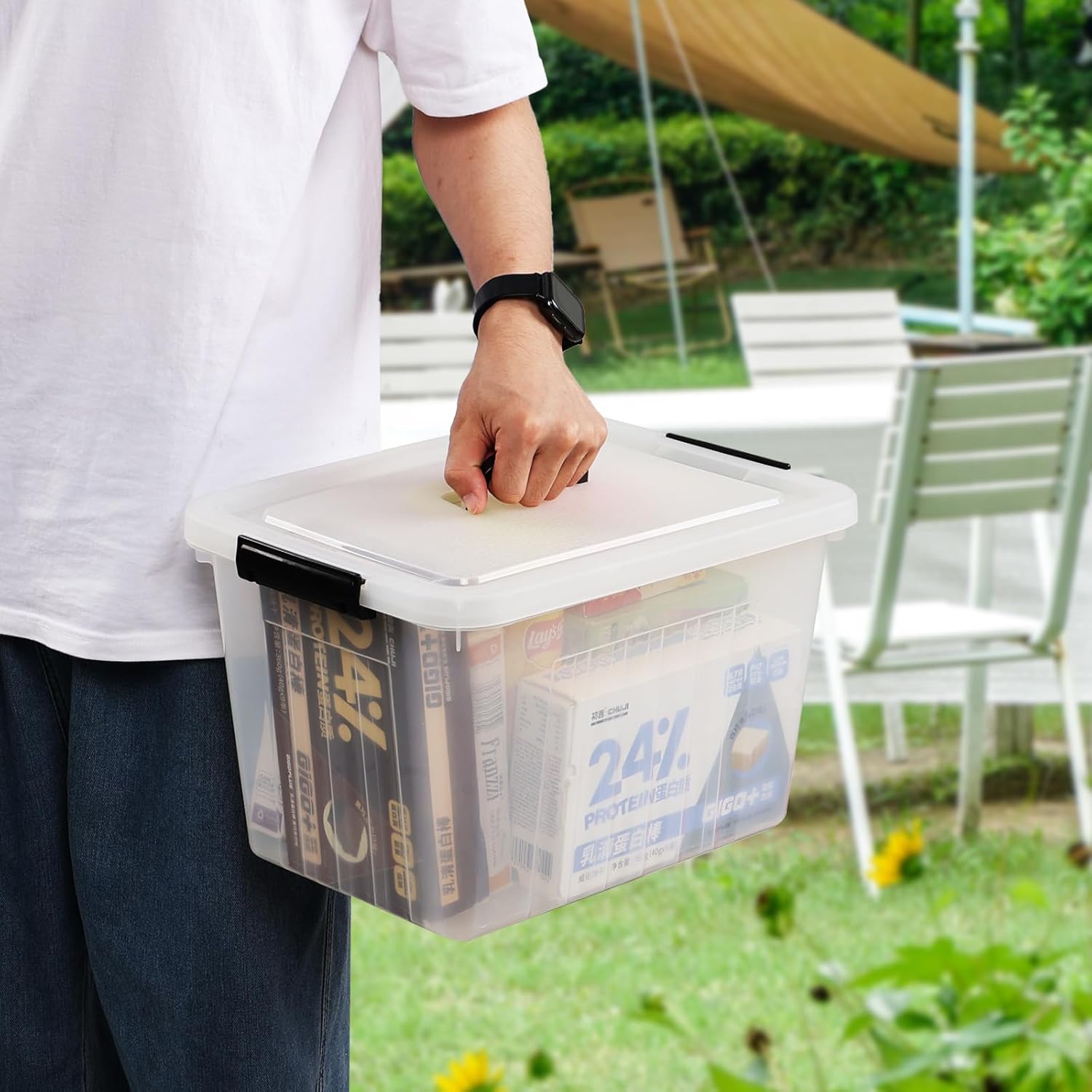 18 Quart Clear Plastic Storage Latching Bin with Lids, Latch Box with Handle, 4 Packs