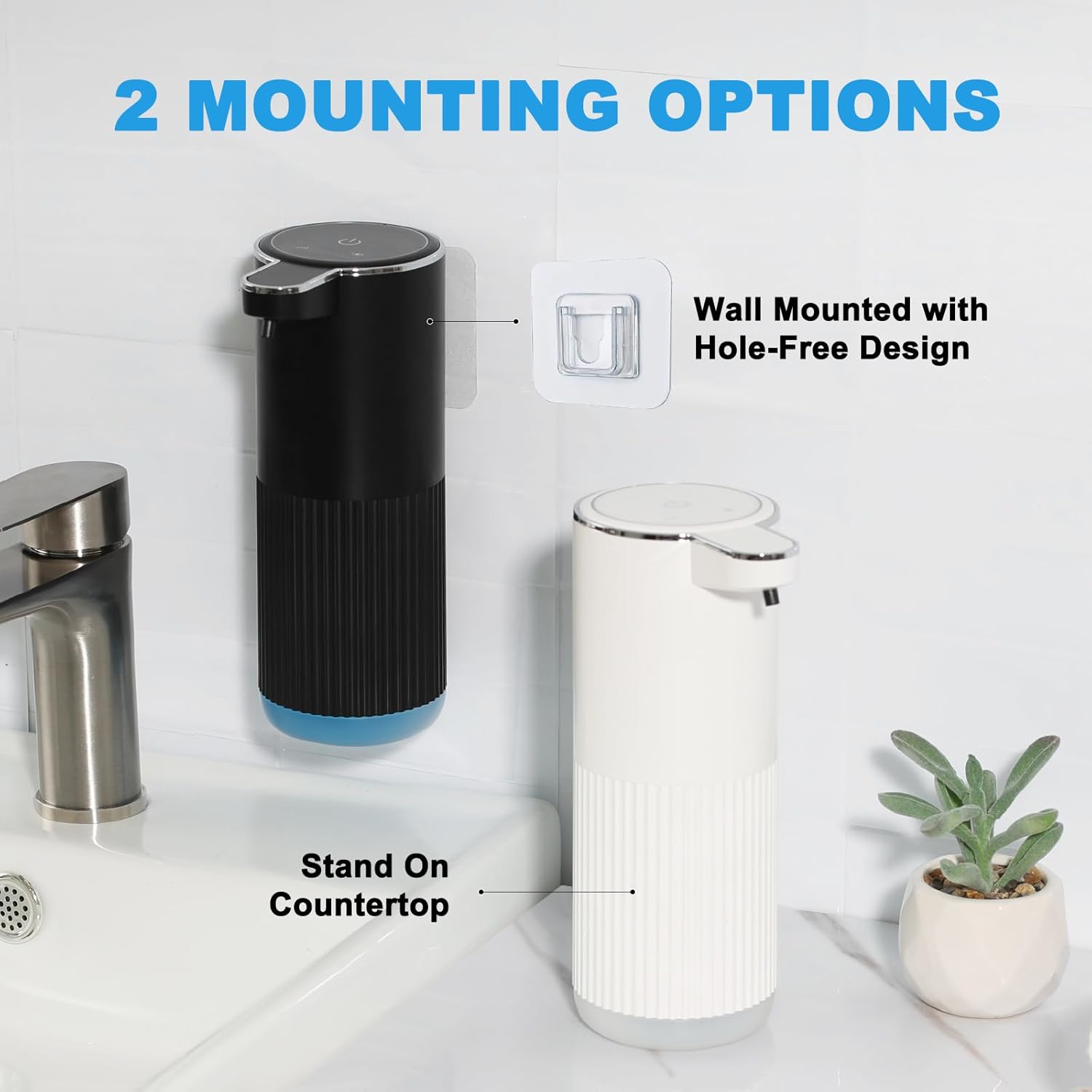 • 【MODERN MATTE BLACK AND WHITE DESIGN】Featuring a compact vertical line design and muted matte finish, this electric soap dispenser touchless blends seamlessly into modern decor. Whether you prefer placing it on the countertop or mounting it on the wall, it provides versatile installation choices. This automatic dish soap dispenser for kitchen fits in spaces in cramped kitchens or bathrooms. It is good for homes, offices, or commercial settings seeking style and practicality.