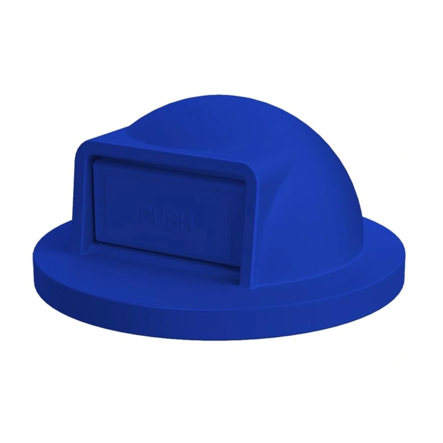 42 Gallon Slatted Circle 100% Recycled Plastic Commercial Outdoor and Indoor Trash Can with Push Open Dome Lid and Internal Liner | Great for Schools and Businesses - Blue