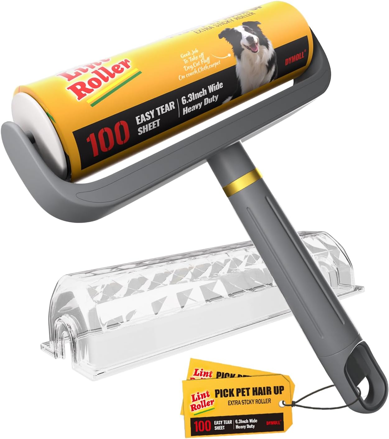 Large Surface Lint Roller, 6.3" Extra Sticky Rollers for Pet Hair, Ginat Dog Cat Hair Remover for Clothes Furniture Cleaning, 100 Sheet