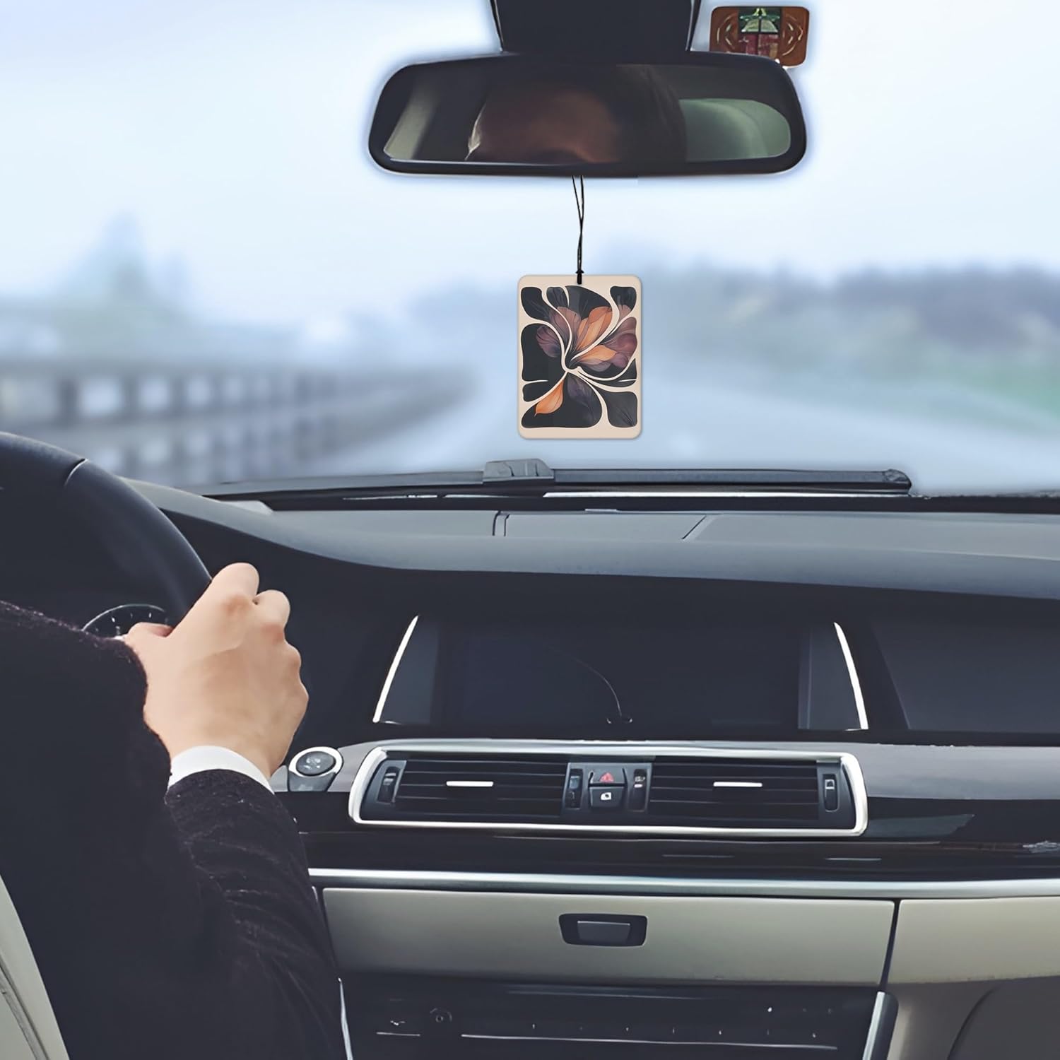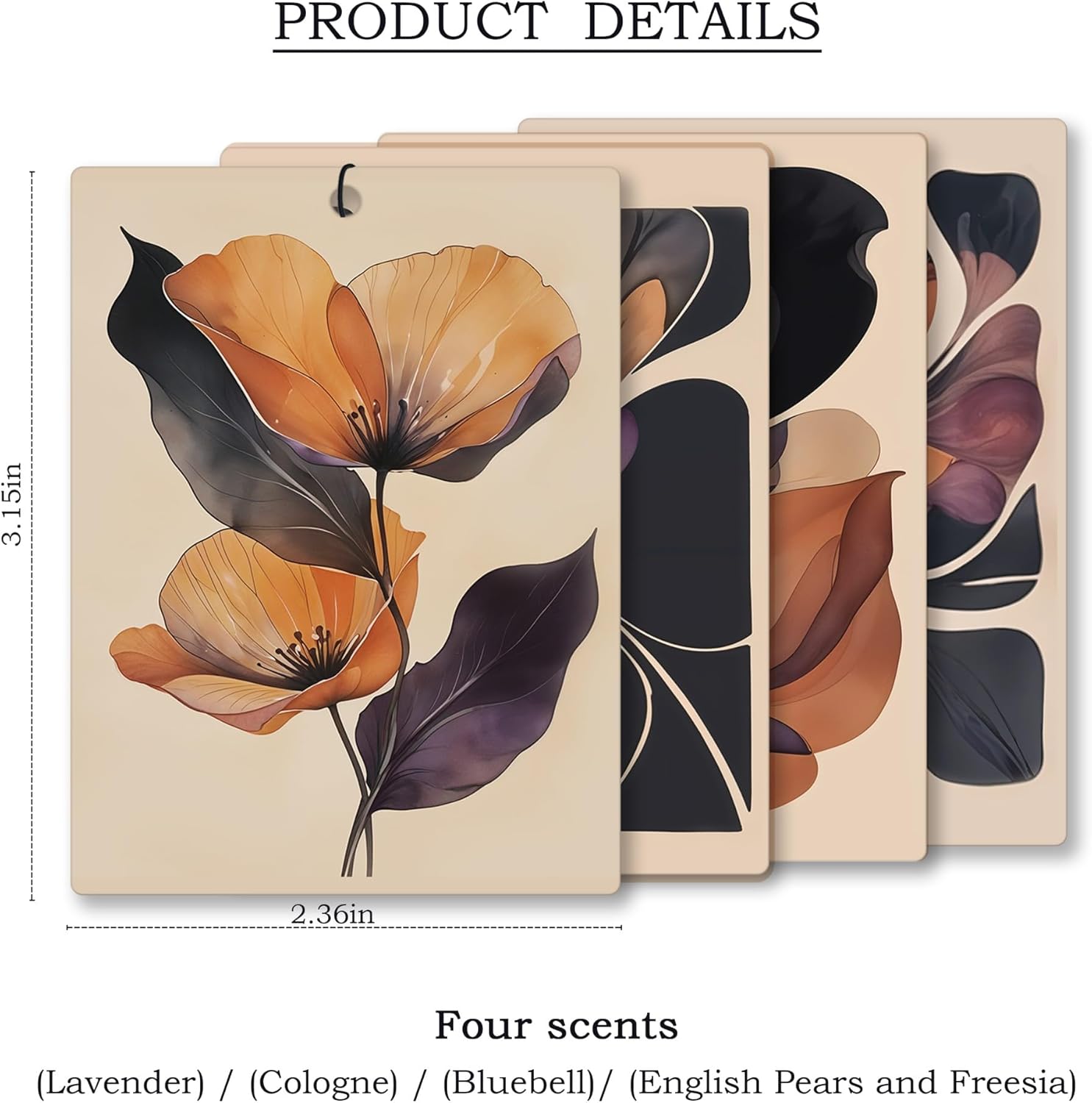 Boho Abstract Floral Car Air Freshener 4 Pcs, Retro Orange and Black Flower Hanging Scents Air Freshener for Women Girls Gifts, Vintage Scented Car Accessories Decor for Room Closet Drawer