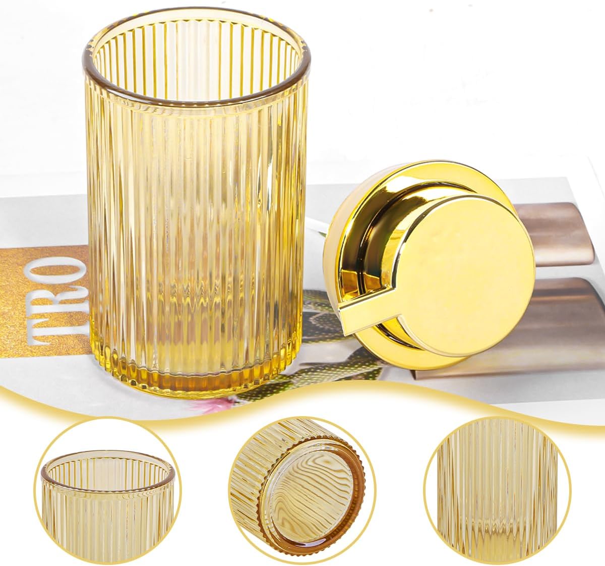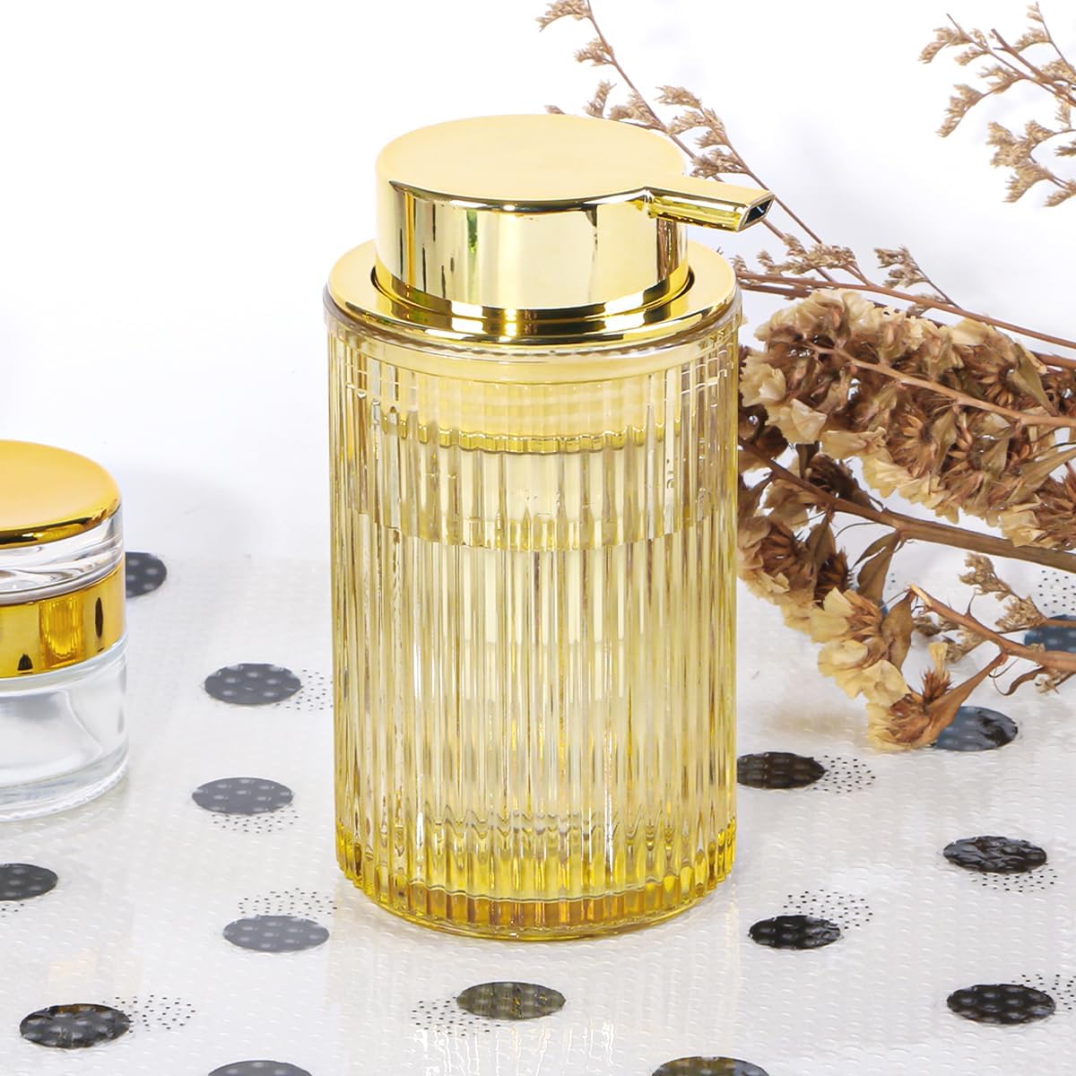 Amber Foaming Soap Dispenser, Glass Foam Hand Soap Dispenser with Gold Pump, 11 Oz Bathroom Refillable Liquid Lotion Pump Ribbed Bottle Container for Kitchen Countertop Decor