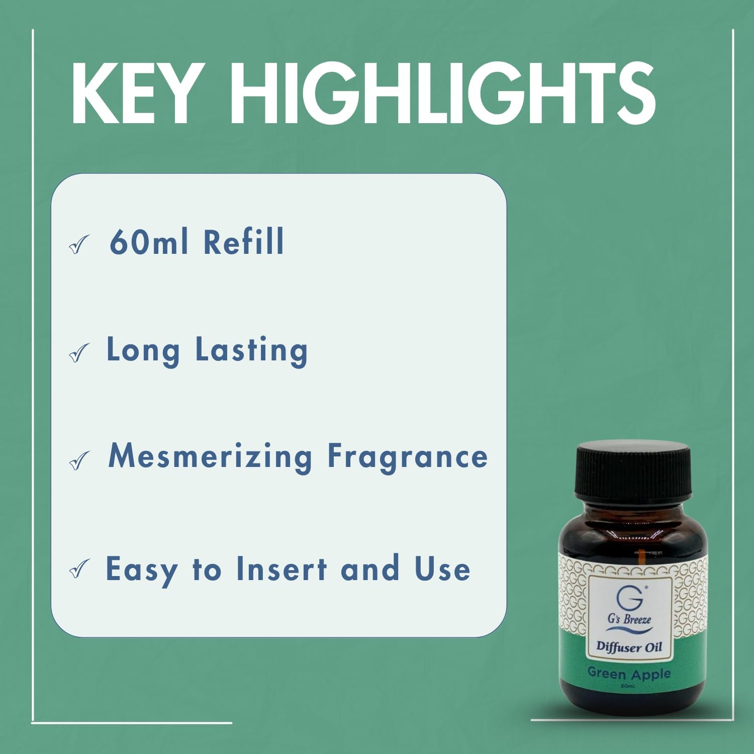 G's Breeze Green Apple Diffuser Oil Refill - Scent of Crisp Apple Fruit - Transform Any Space with Invigorating Fragrance – Ideal for Home & Office – Long-Lasting Freshness Aroma - 60 ML