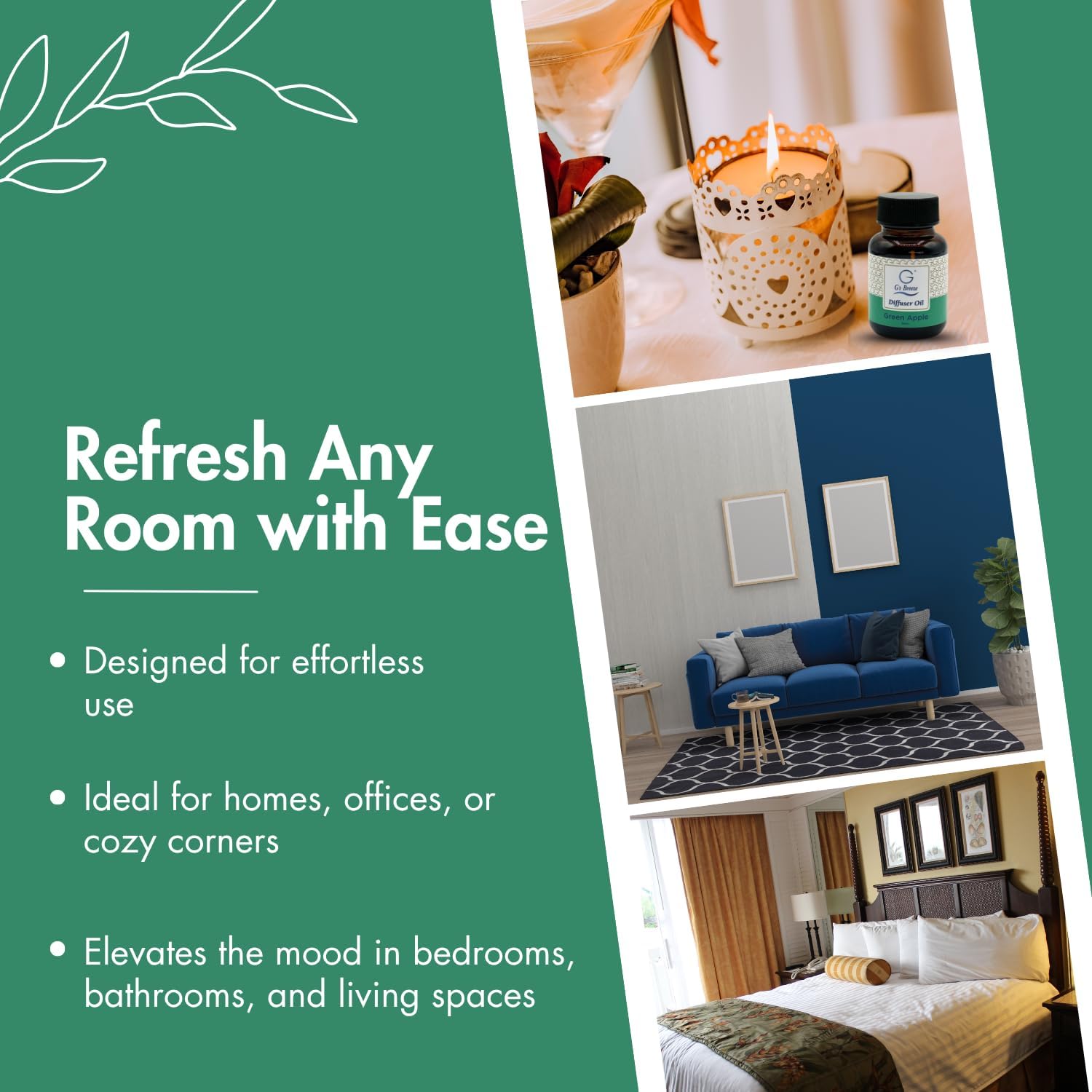 • Easy to Use: This 60 ml refill bottle is designed to fit seamlessly into your Colorful Breeze Diffuser. Just insert, switch on, and enjoy the crisp green apple aroma as it effortlessly transforms your space