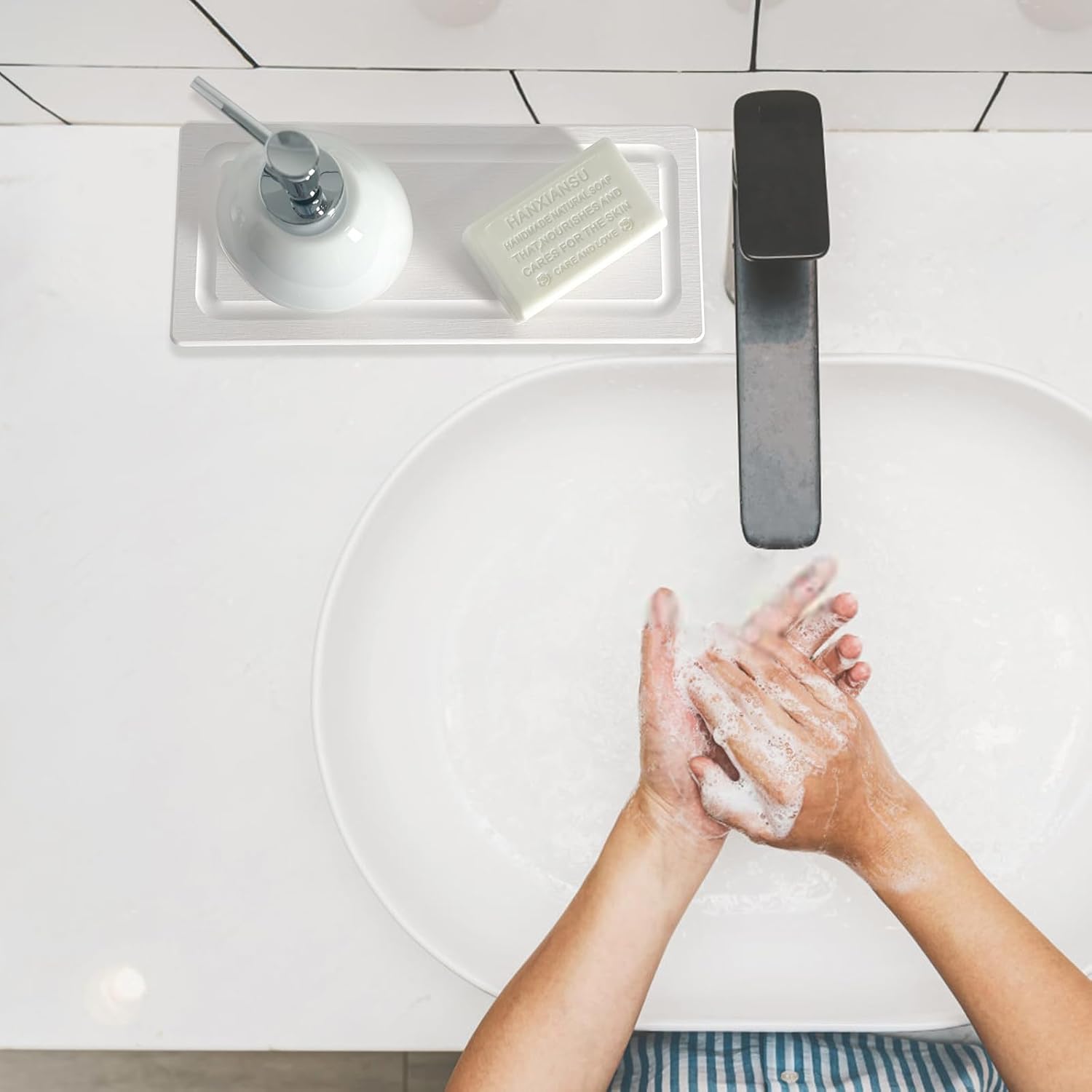 • 【Multifunctional】This versatile diatomite tray works perfectly for bathroom sinks and kitchen counters. Ideal as a drying base for soap, cups, hand soap bottles and cosmetics. Keeps surfaces dry and tidy for a cleaner, more organized space.
