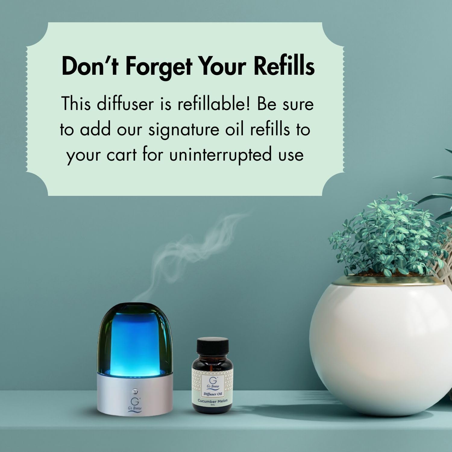 G's Breeze Cucumber Melon Diffuser Oil Refill - Refreshing, Sweet & Juicy Aroma, 48 Hour Long-Lasting Scent, Odor Eliminating Fragrance for Home & Office - 60 ML