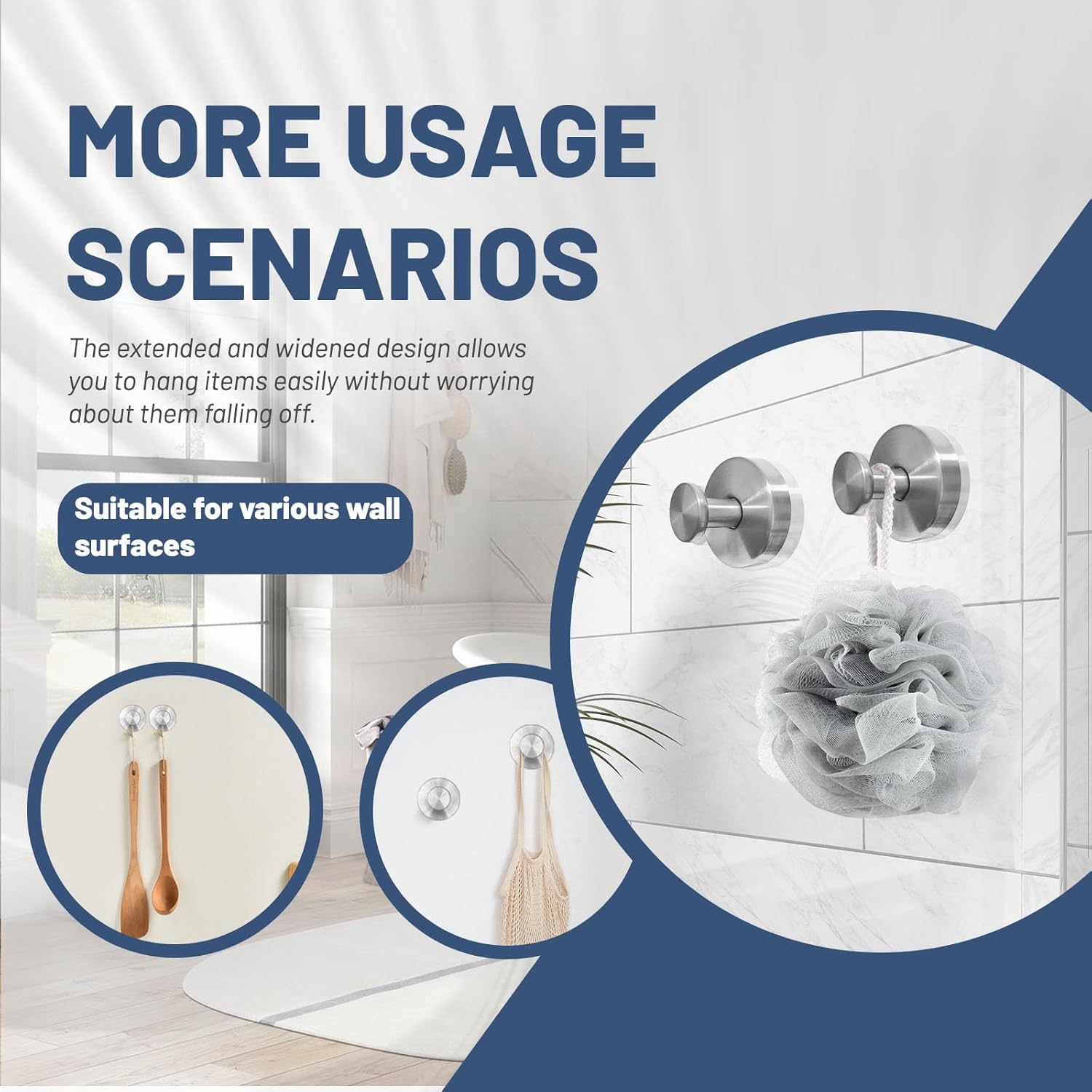 • 【Strong and Reliable Suction Power】 Featuring advanced vacuum adsorption technology, these bathroom hooks securely attach to smooth surfaces like bathroom tiles and glass doors, ensuring a firm hold for long-lasting use without slipping or falling.