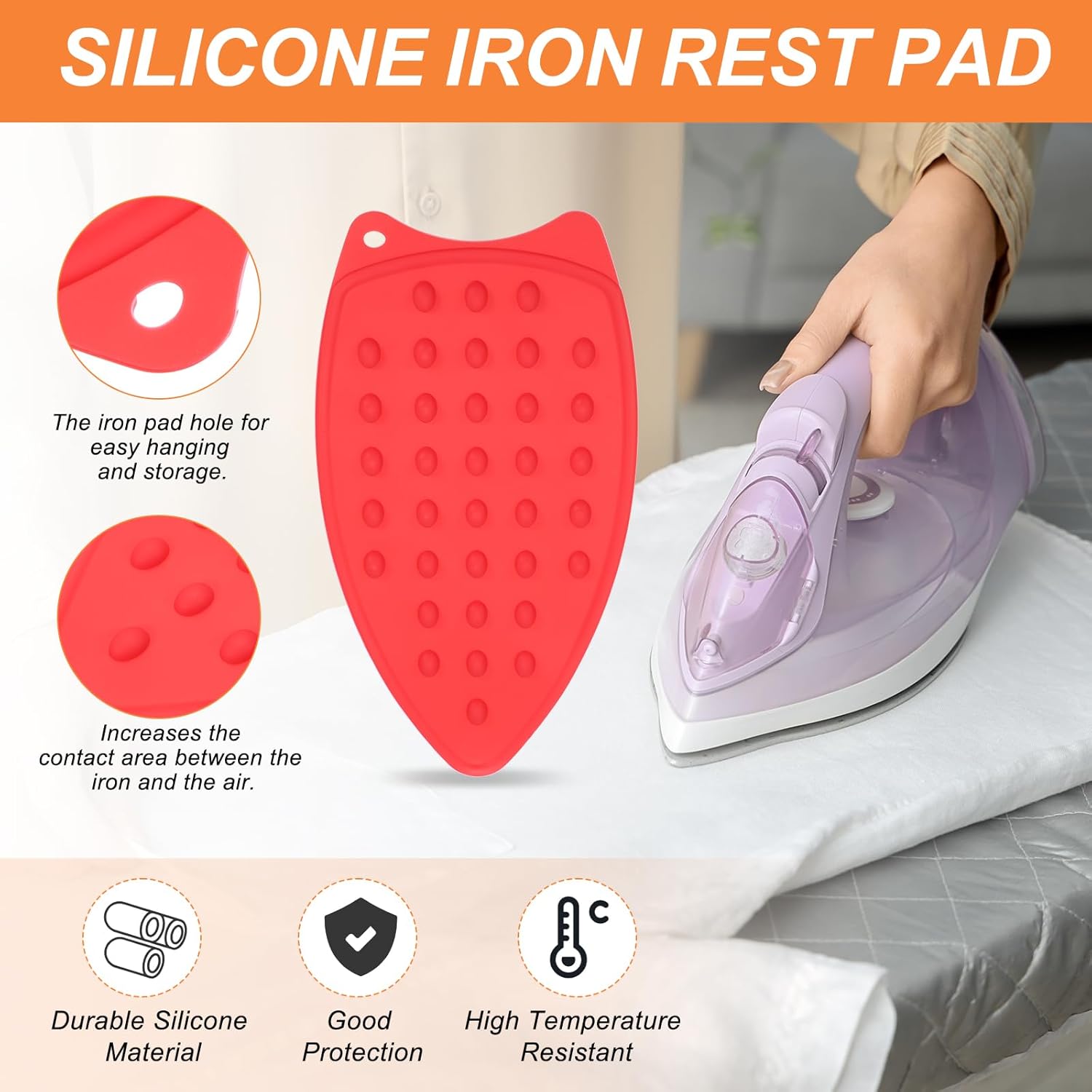 • Instruction: Put the iron on the silicone iron rest pad when you stop ironing clothes. There is no need to repeatedly switch the iron on and off during use to keep it heated. You can iron clothes easily and conveniently.