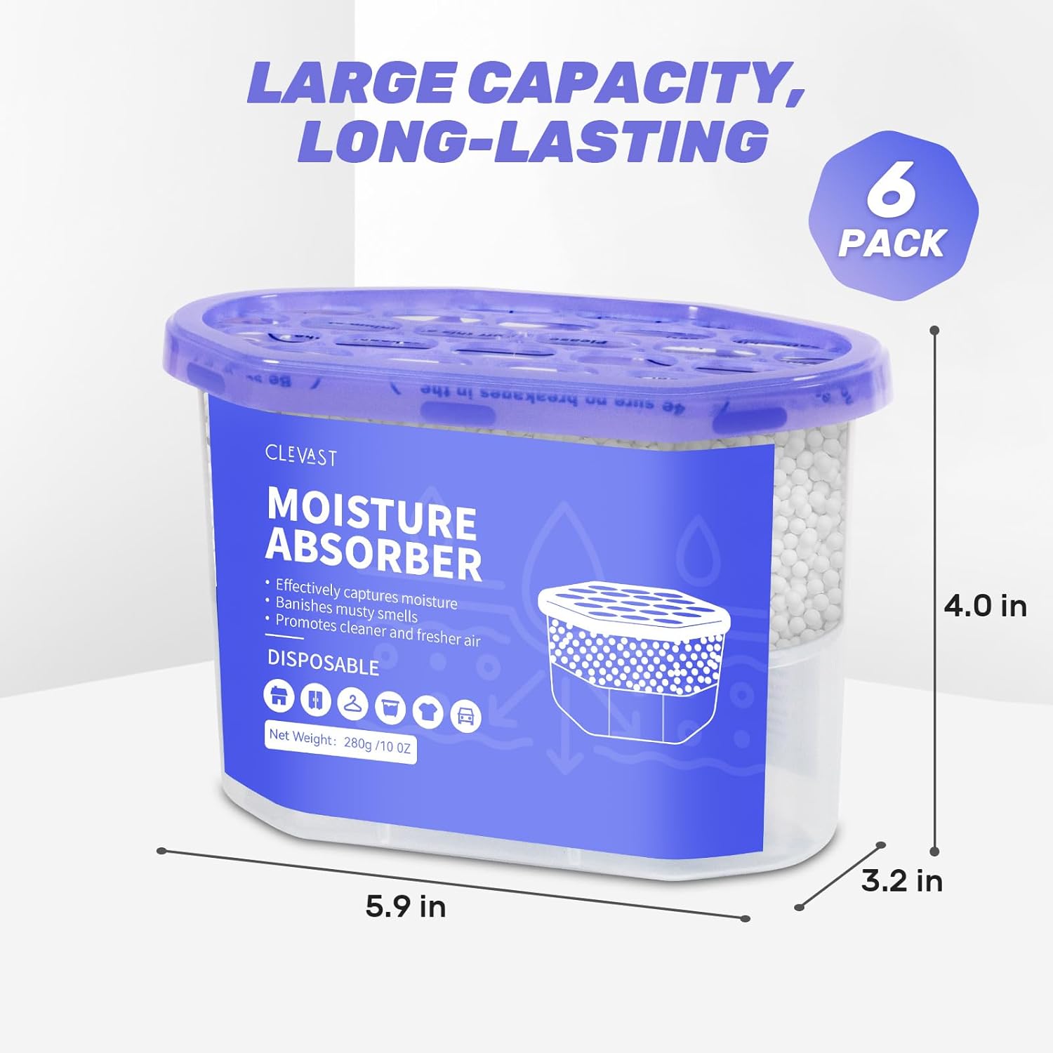 CLEVAST Moisture Absorbers Boxes, 10 OZ, 6 Pack, Dehumidifier Box for Closet, Unscented Hanging Humidity Absorber in Wardrobes, Bedrooms, Bathrooms, RV