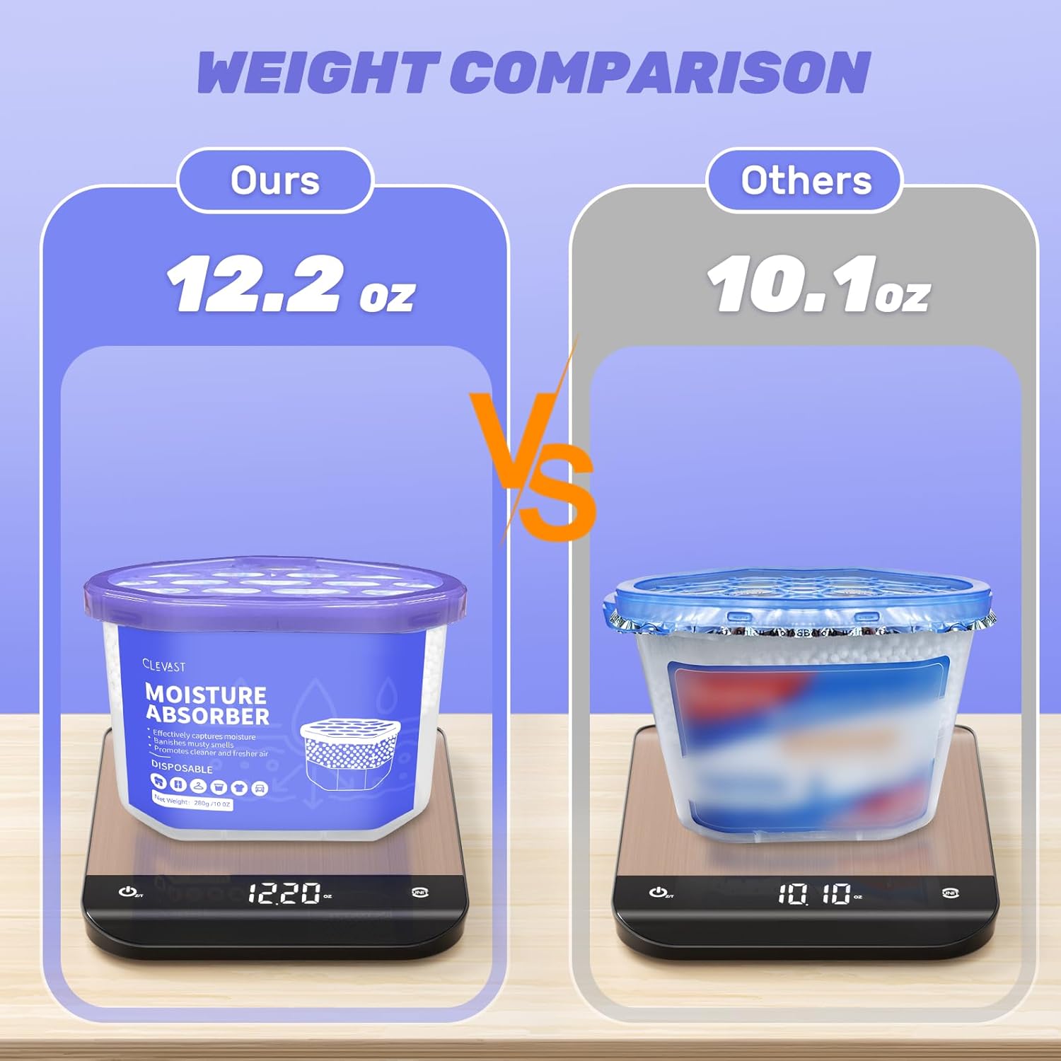 • VISIBLE DEHUMIDIFYING PROCESS: The CLEVAST absorber buckets absorb excess moisture from the air and collect it in the storage area, functioning like a small dehumidifier. The amount of water accumulated through the dehumidification process can be monitored at any time. With a large capacity of 280g per box, it lasts longer. (IF YOU NEED MORE POWERFUL DEHUMIDIFICATION, YOU CAN PEEL OFF THE WHITE PERMEABLE PAPER).