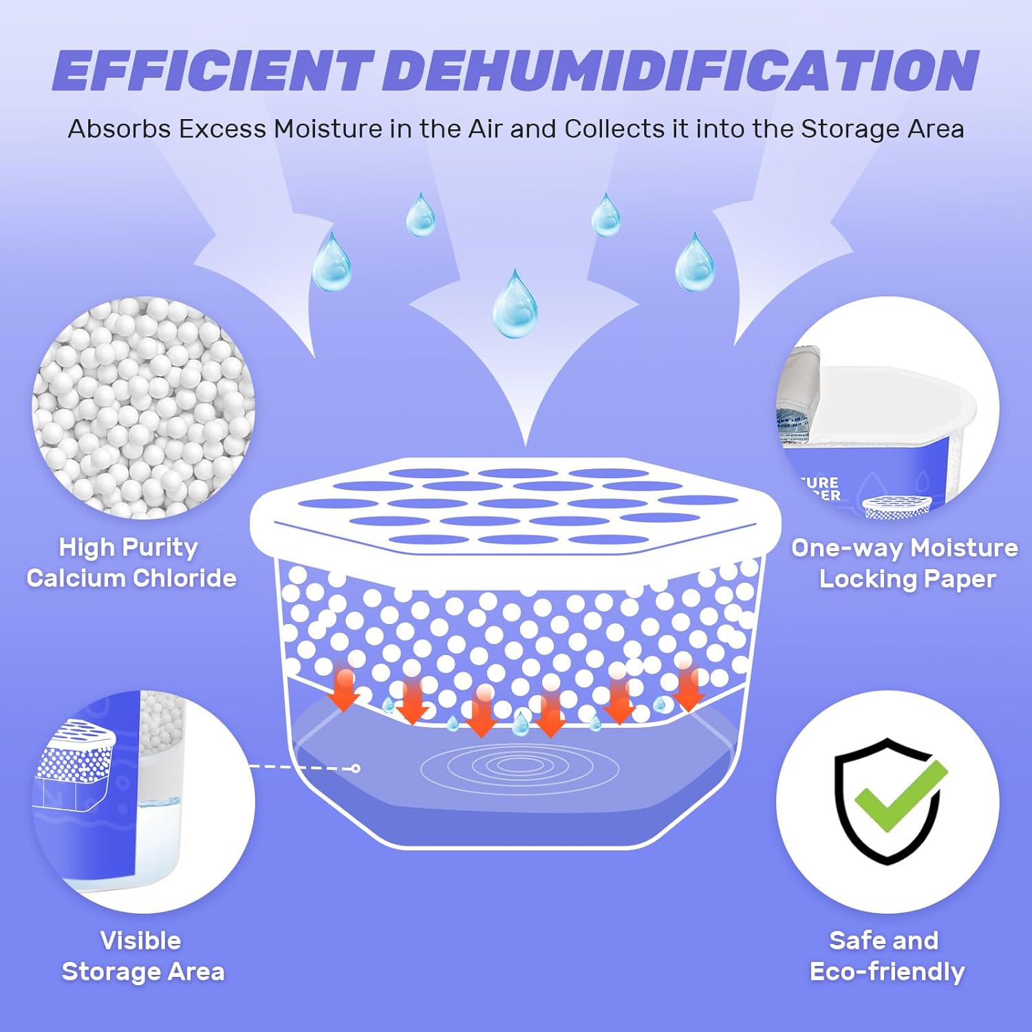 • EFFECTIVE DEHUMIDIFICATION: The CLEVAST dehumidifier boxes feature spherical calcium chloride particles that can attract and absorb excess moisture quickly and efficiently. Moisture absorbers are designed with premium one-way moisture-permeable paper that will securely lock the moisture inside.