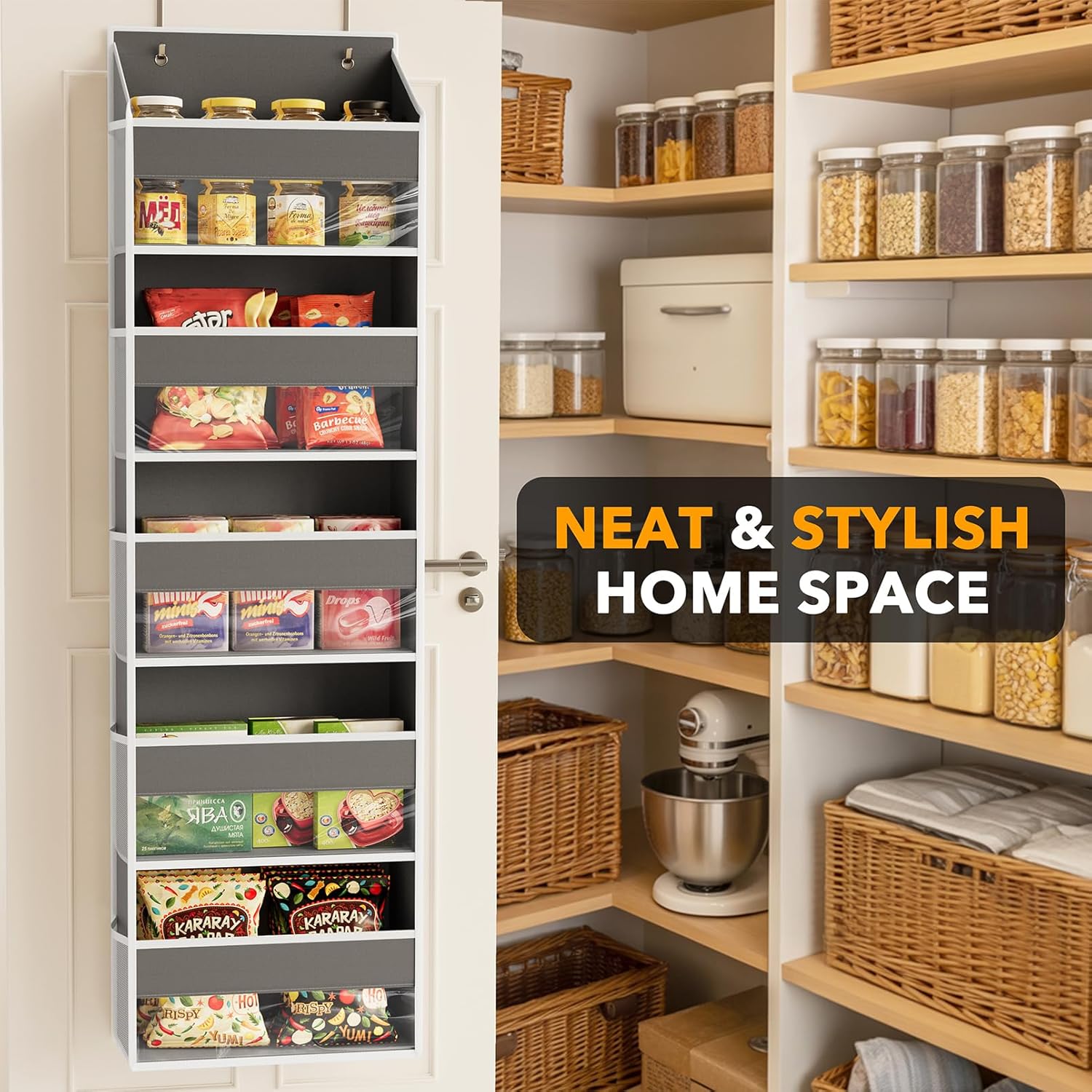 • STURDY CONSTRUCTION - Extra cardboard panels provide sturdy support to this over the door organizer made of the non-woven fabric, preventing deformation even with long-term use; No flimsy, collapsing pockets!