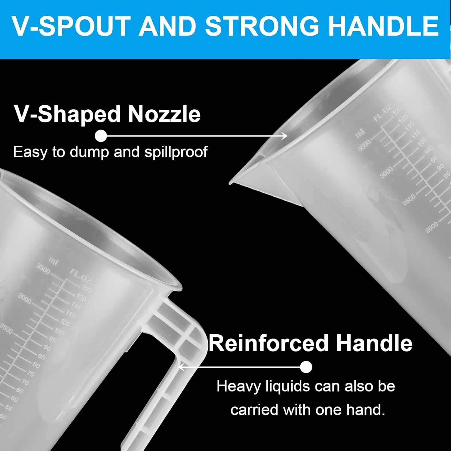 3 Pack 3.5 Liter Measuring Pitcher, Plastic Measuring Cups with Cover, Clear Plastic Graduated Measuring and Mixing Pitcher, Large Measuring Container with Handle and Pour Spout (3500ml)