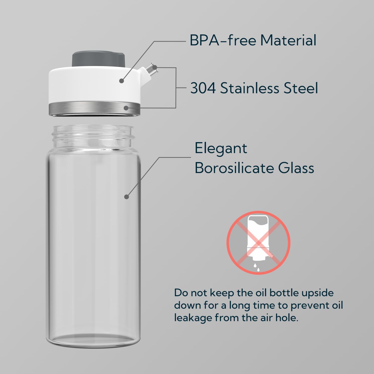• Elegant Borosilicate Glass and BPA-free Material: Our olive oil dispenser bottle is made of high-quality borosilicate glass and 304 stainless steel, which is more elegant and safer. The whole product is made with BPA-free material