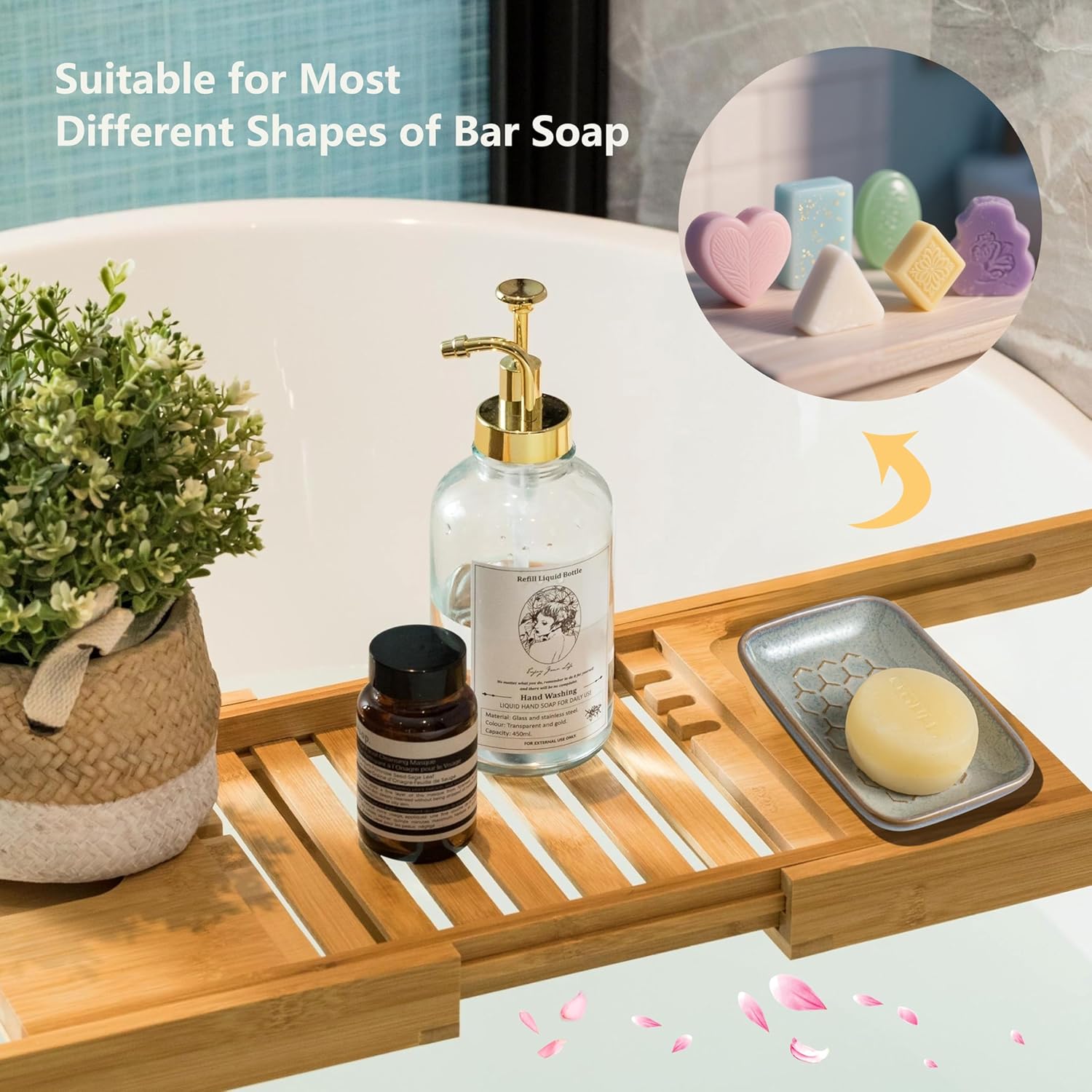 • PREMIUM CERAMIC & EASY TO CLEAN: Compared to plastic, wood and silicone materials, our ceramic materials are more high-quality and long-lasting, waterproof and non-slip, and will not break easily. The bathroom soap dish has a smooth surface and is easy to clean, You can use a soft brush to gently scrub it with water, or directly put it in the dishwasher. (Tips: Wash once a week is recommended.)